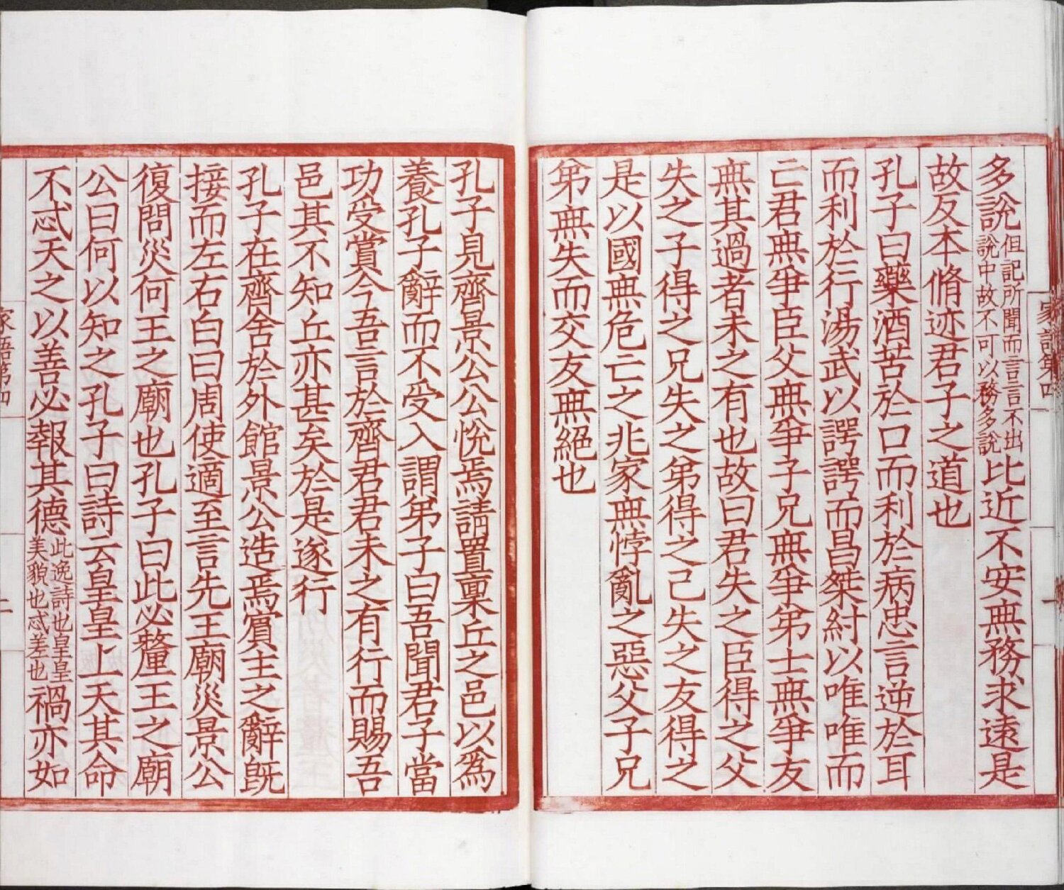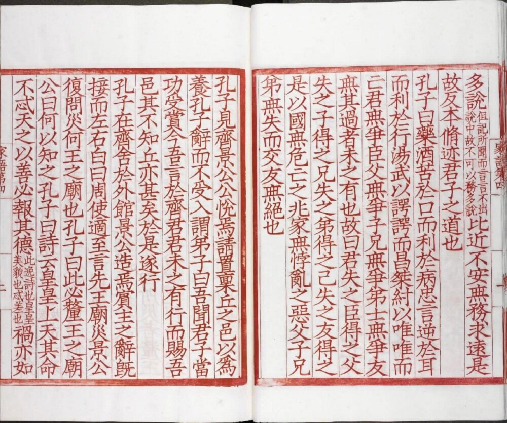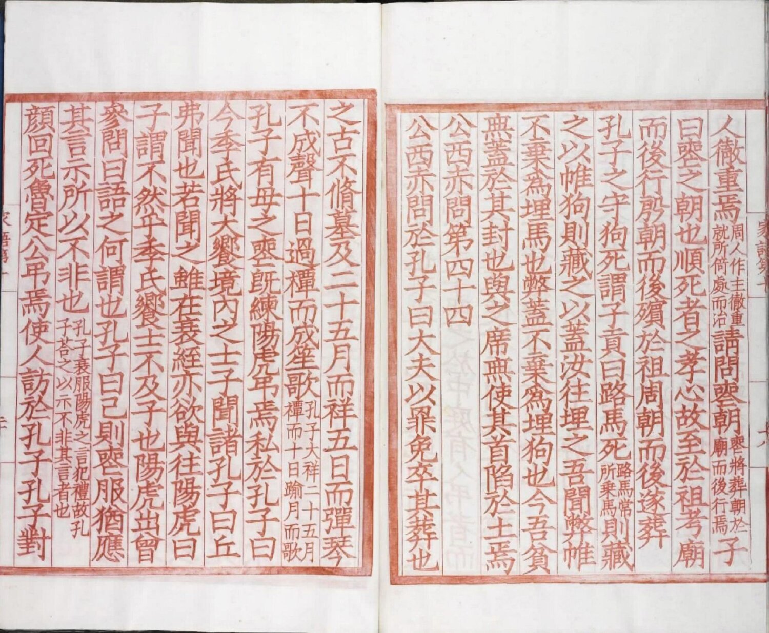 《孔子家语》是一部记录孔子及孔门弟子思想言行的著作。其内容或是自汉朝以前到汉朝早期不断编纂而成,后来王肃注对其整理注解。今传本共十卷(原二十七卷),四十四篇。此内含明隆庆六年徐祚锡长洲刊本,清光绪二十四年贵池刘氏玉海堂景宋蜀刊朱印及墨印本。