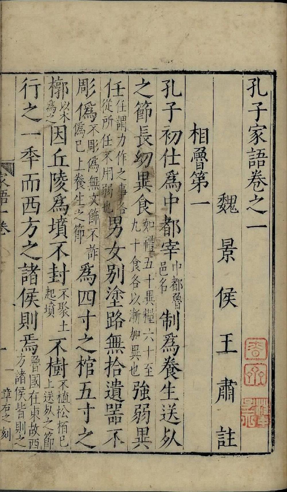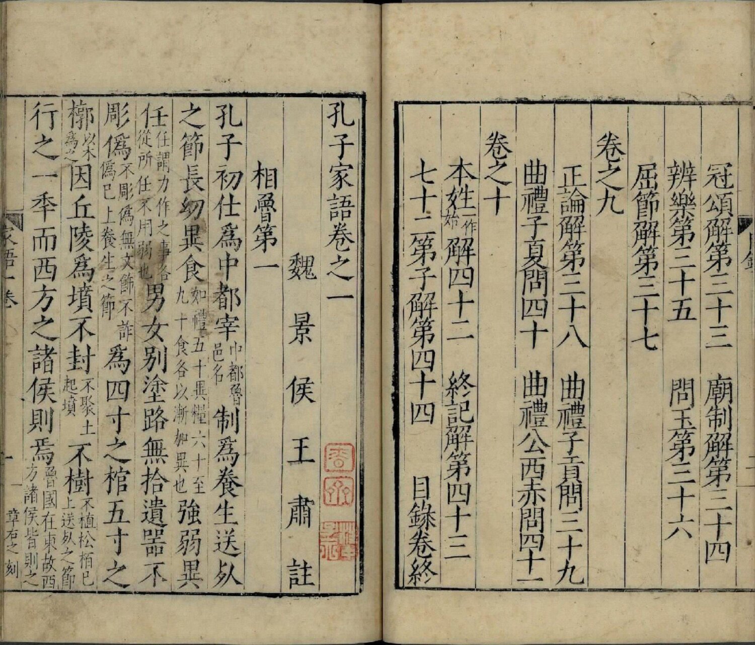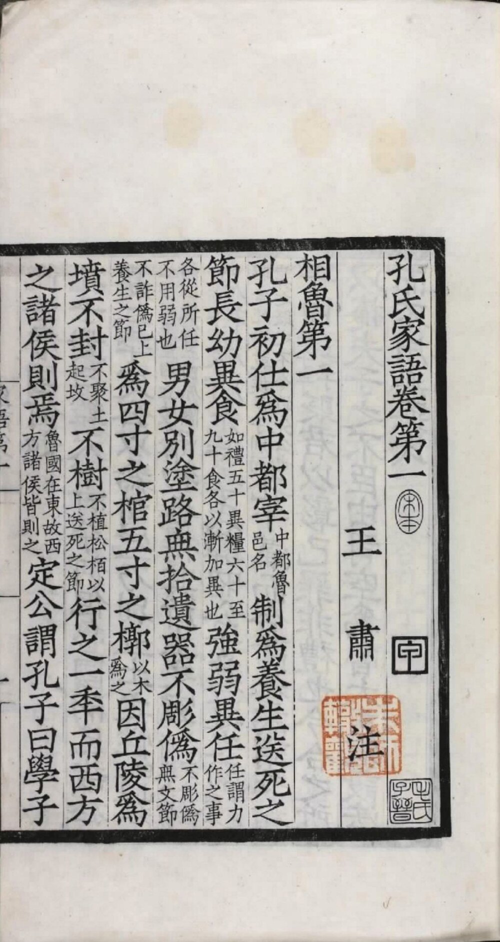 卷一:相鲁第一、始诛第二、王言解第三、大昏解第四、儒行解第五、问礼第六、五仪解第七