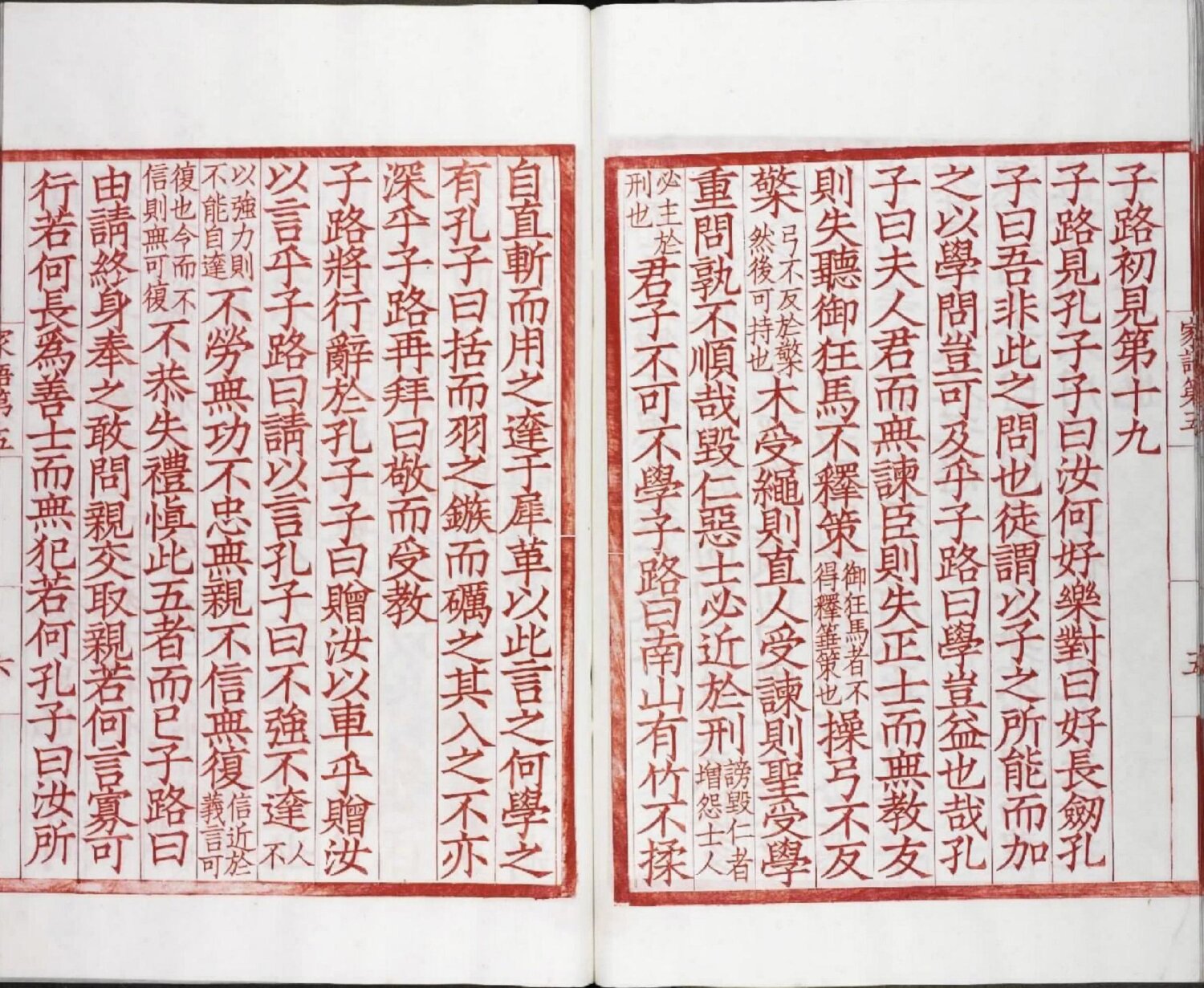 卷五:颜回第十八、子路初见第十九、在厄第二十、入官第二十一、困誓第二十二、五帝德第二十三