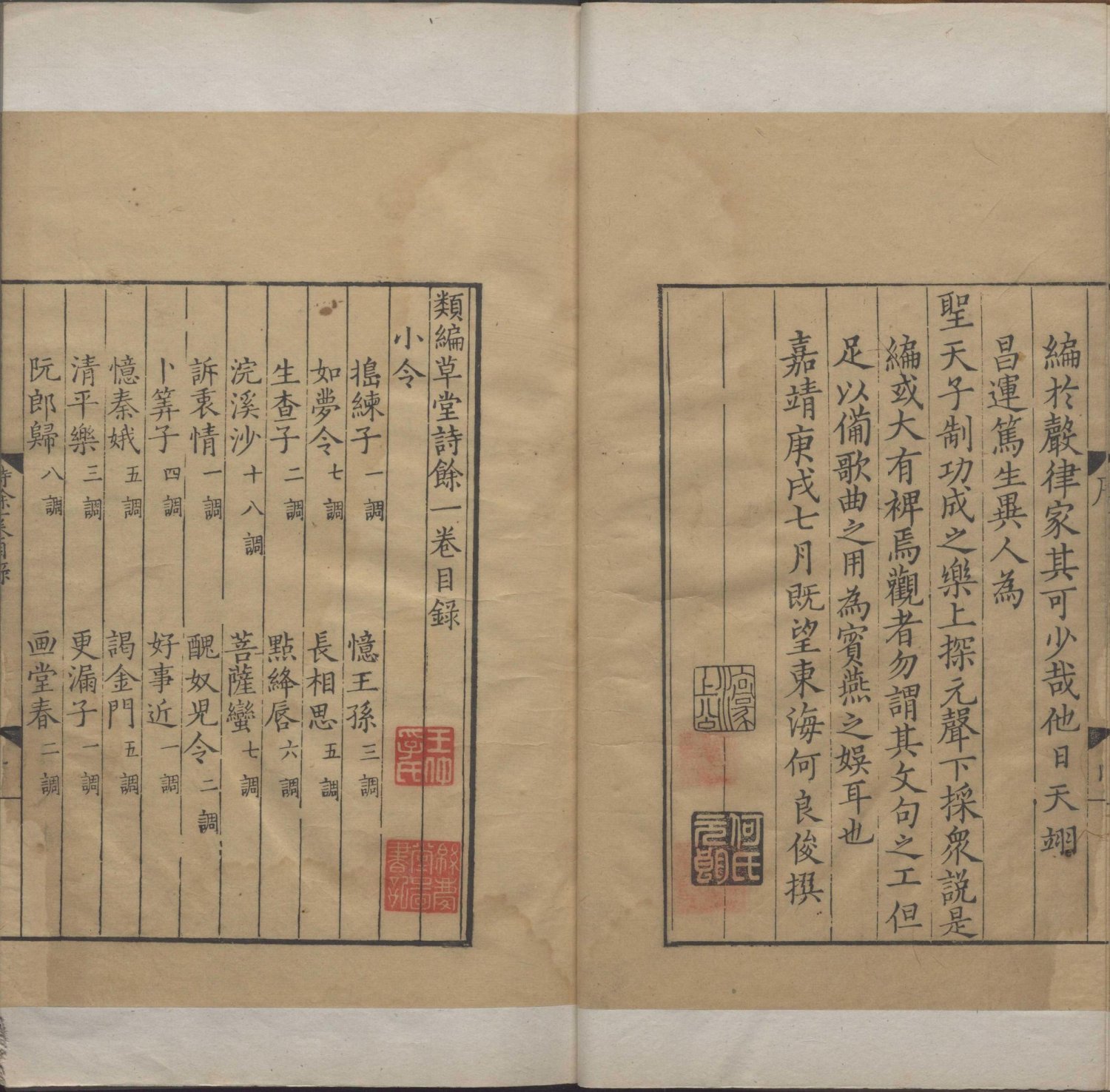 草堂詩餘序:嘉靖庚戌七月既望東海何良俊撰