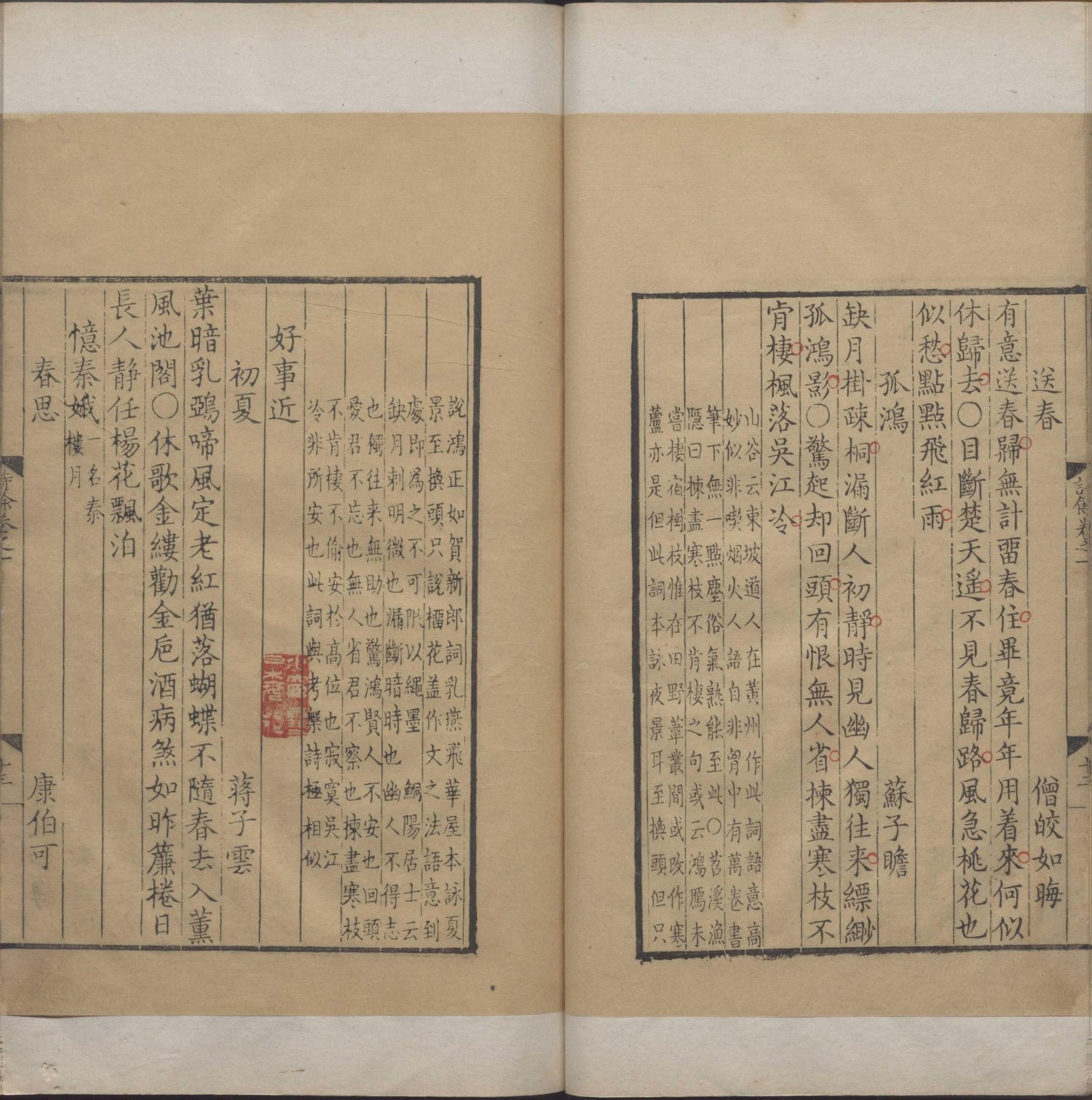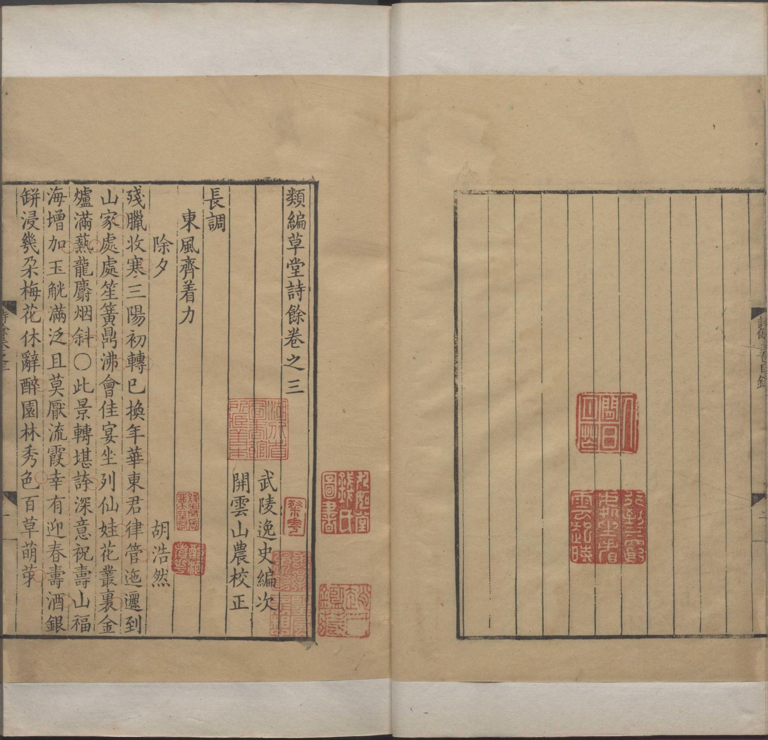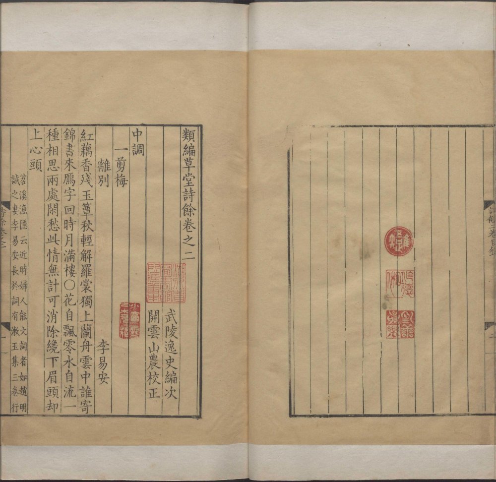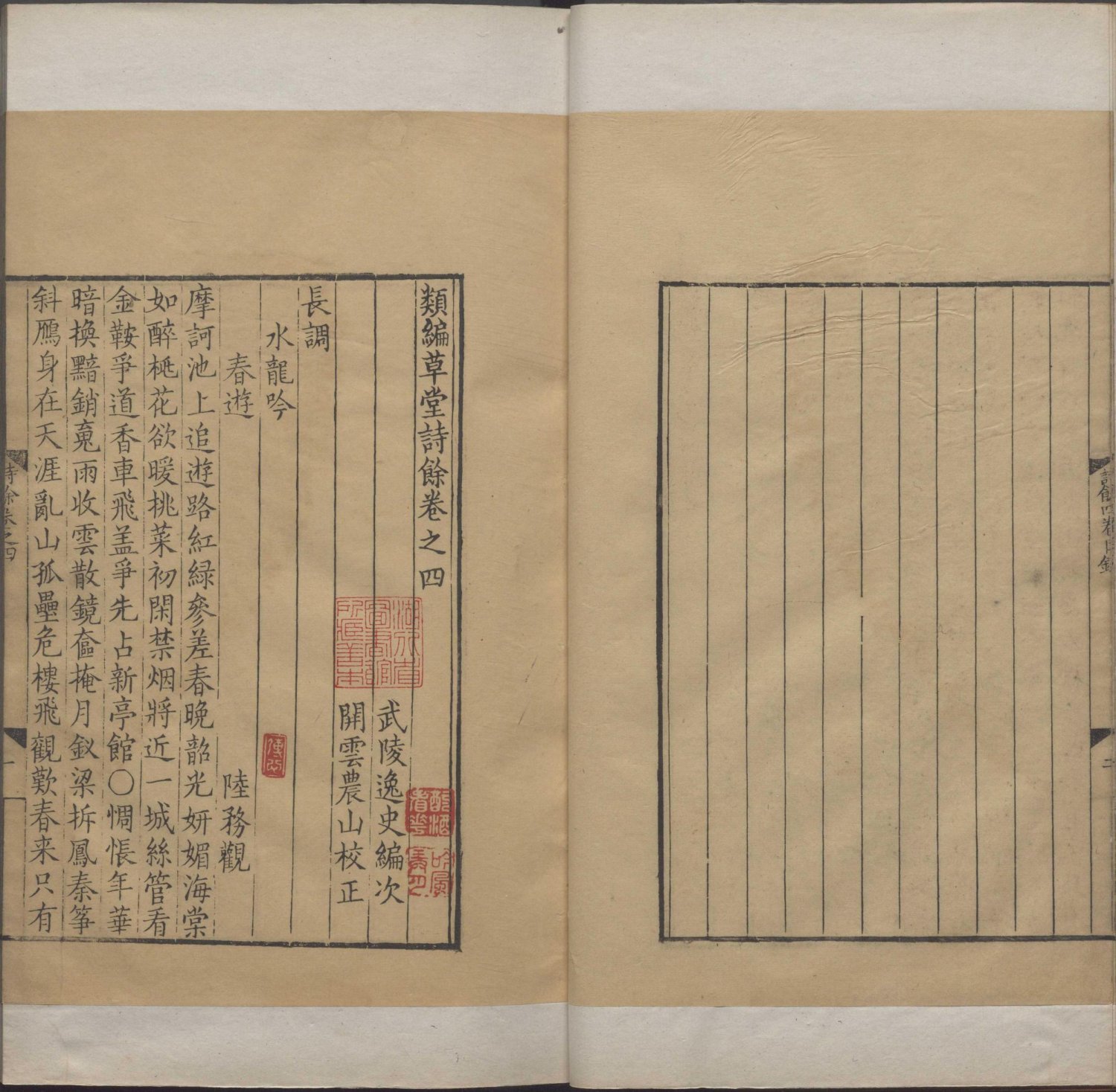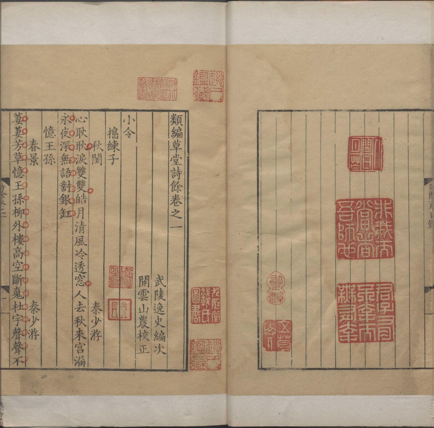 类编草堂诗馀. 四卷. 明. 顾从敬. 编次. 明嘉靖二十九年刊本
