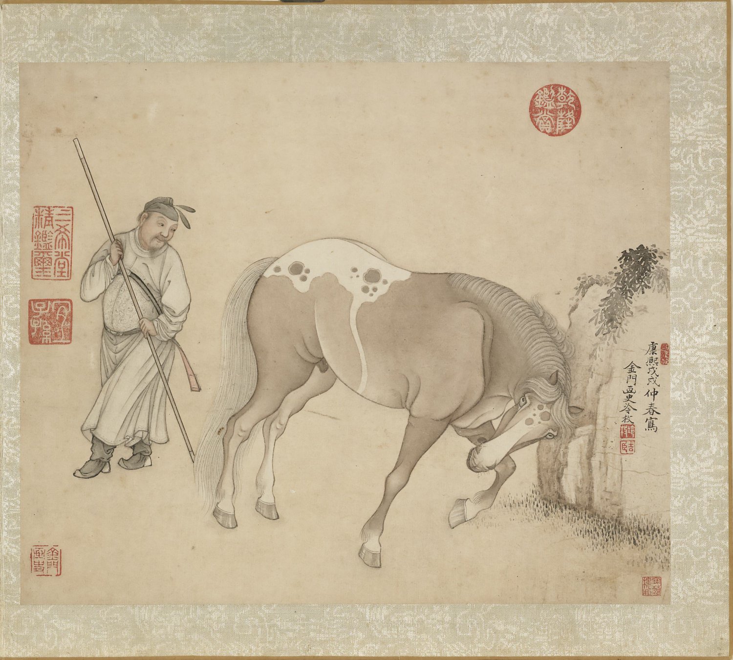 作者款识:康熙戊戌仲春寫 金門畫史冷枚
