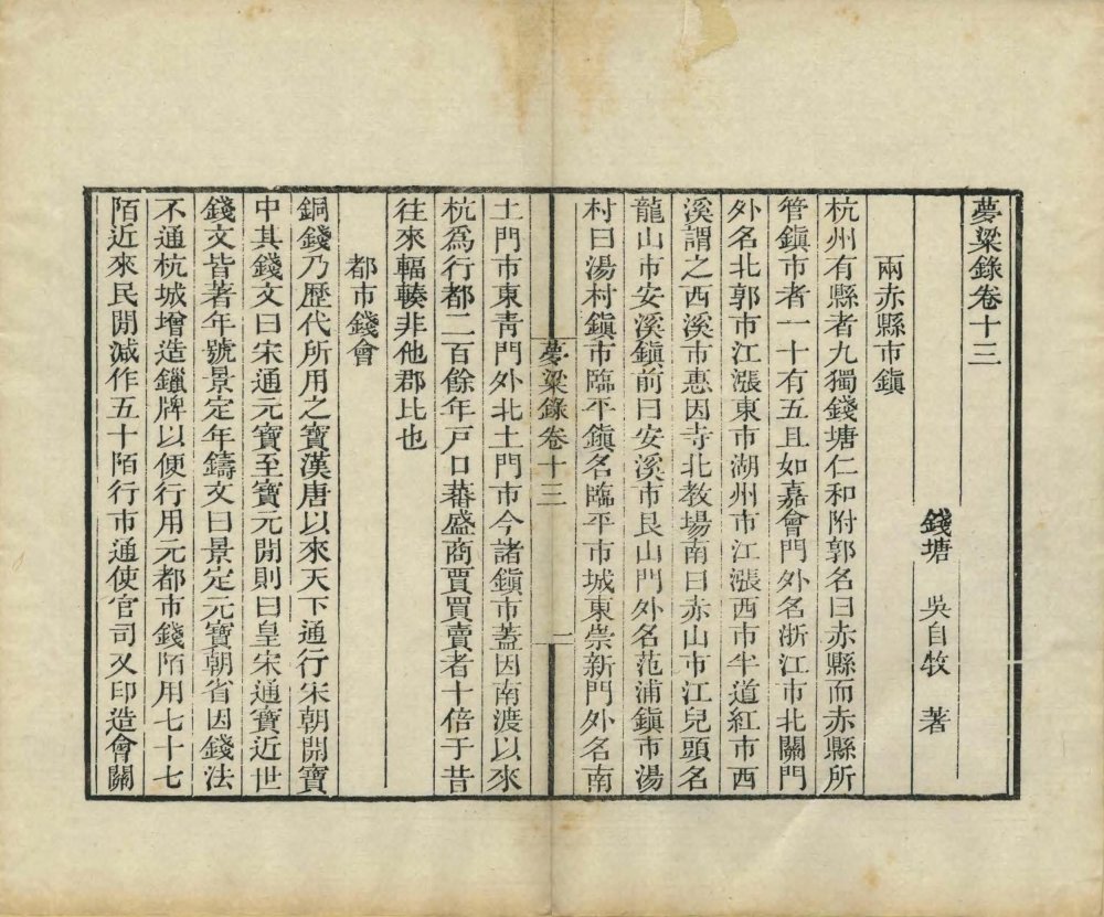 卷十三:兩赤縣市鎭、都市錢會、團行、鋪席、天曉諸人出市、夜市、諸色雜货