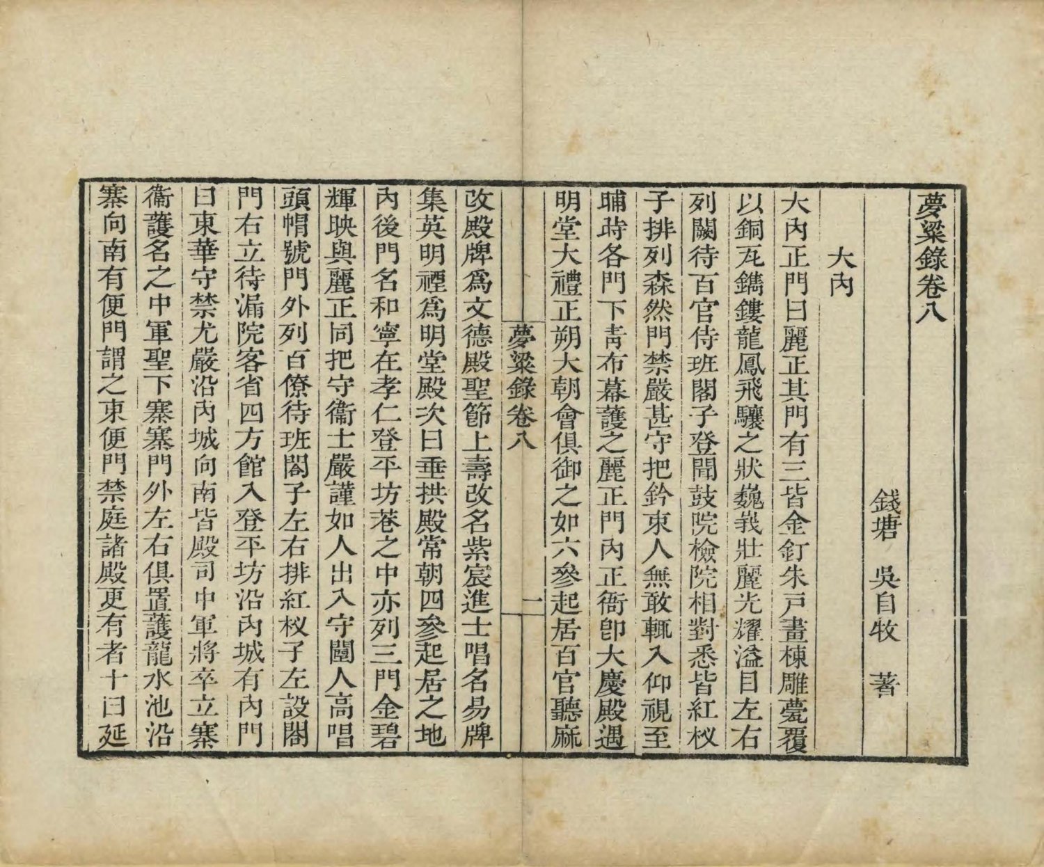 卷八:大內、德壽宮、太廟、景靈宮、萬壽觀、御前宮觀、西太乙宮、佑聖觀、顯應觀、四聖延祥觀、三茆寧壽觀、開元宮、龍翔宮、宗陽宮