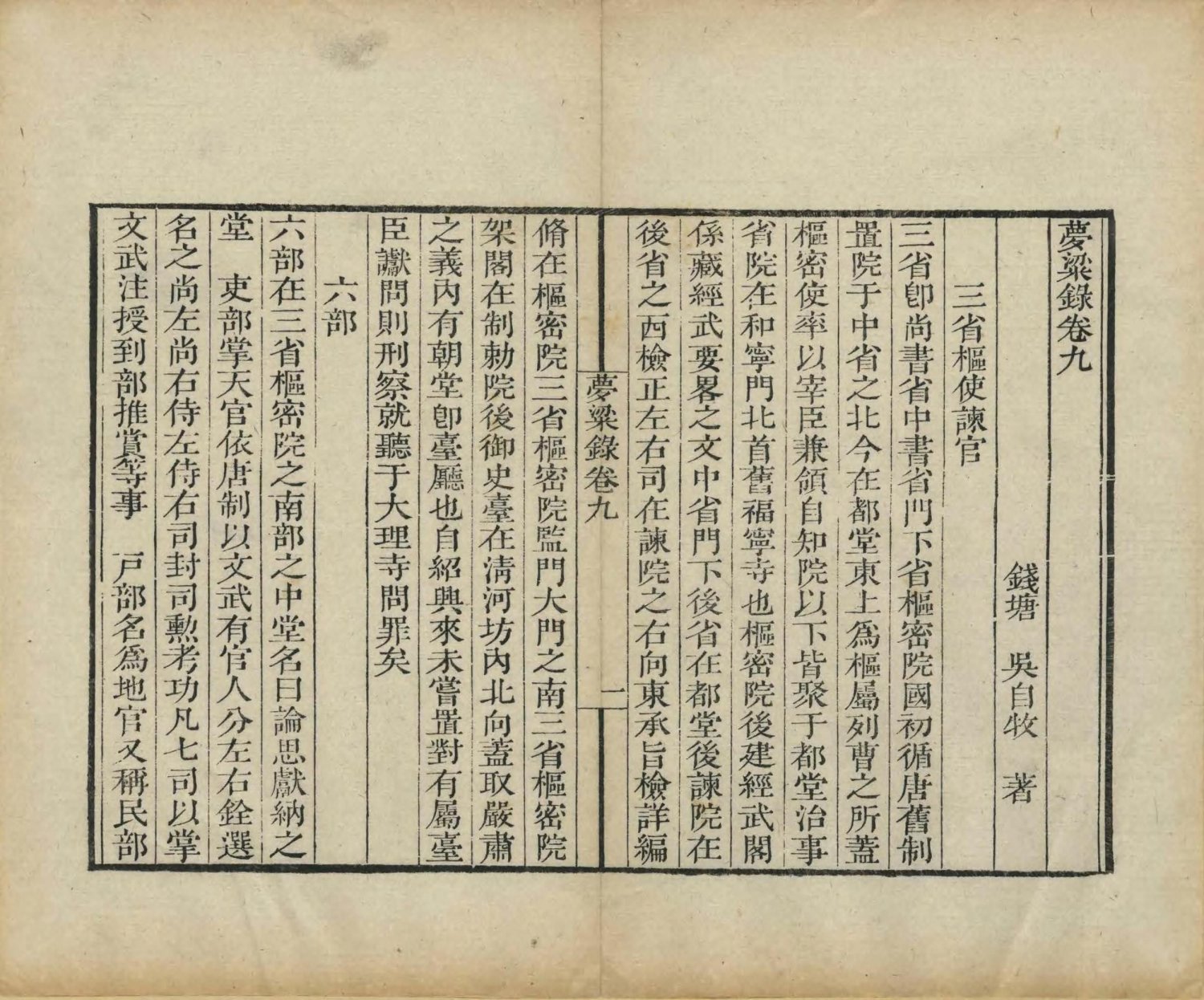 卷九:三省樞使諫官、六部、六部監門、諸寺、秘書省、諸監、大宗正司、省所、六院四轄、三衙、閤職、監當諸局、諸倉、內司官、內諸司