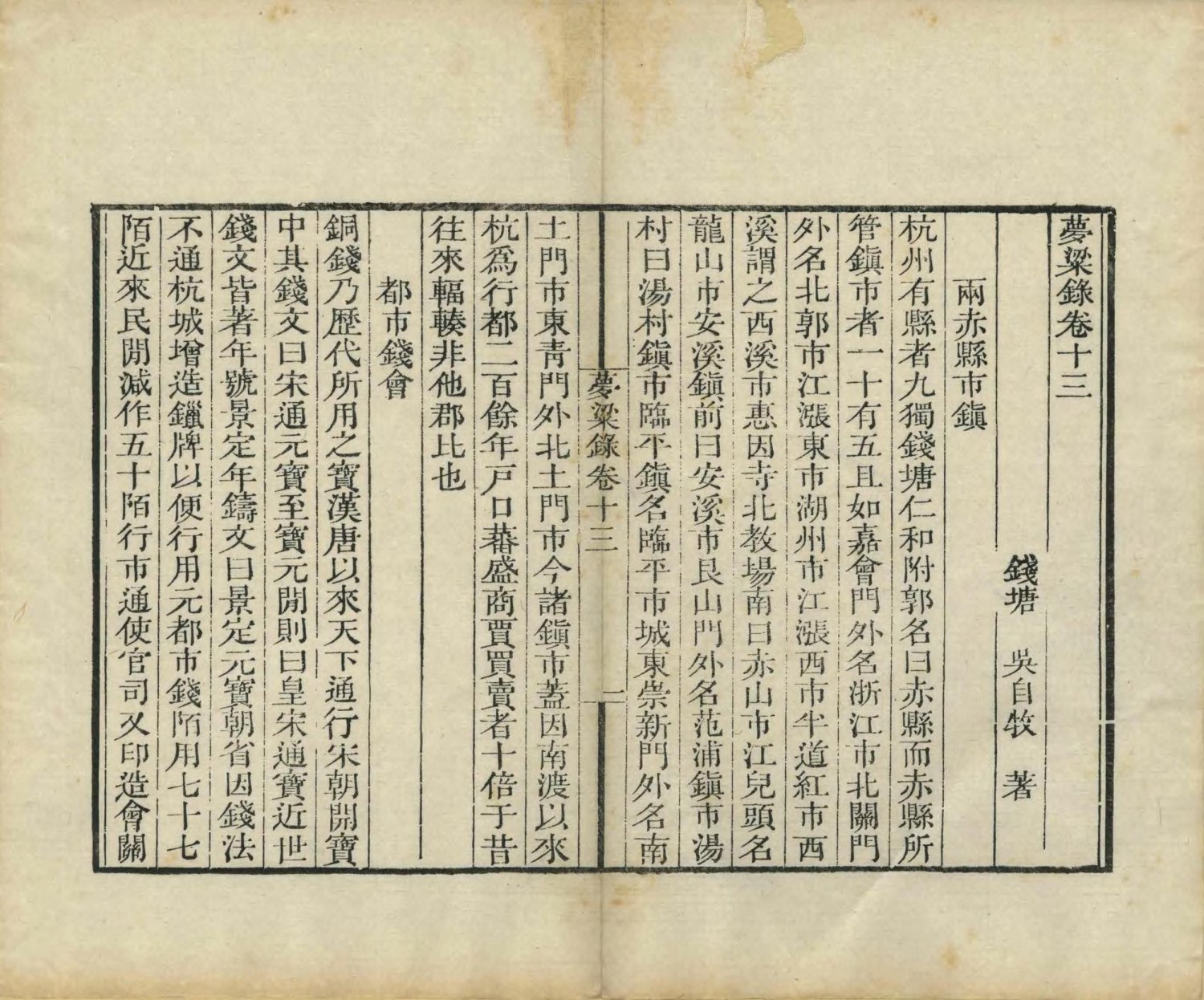 卷十三:兩赤縣市鎭、都市錢會、團行、鋪席、天曉諸人出市、夜市、諸色雜货