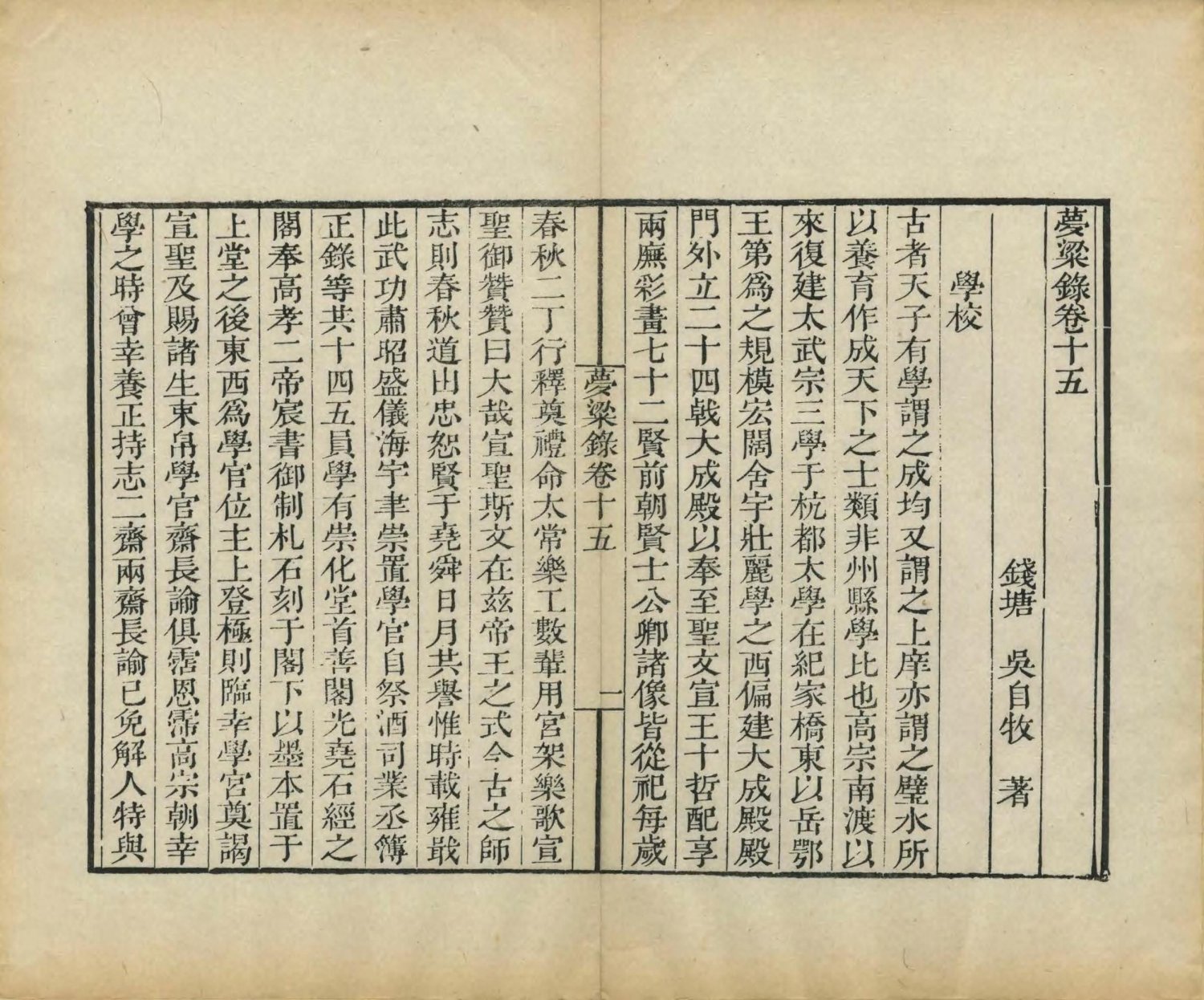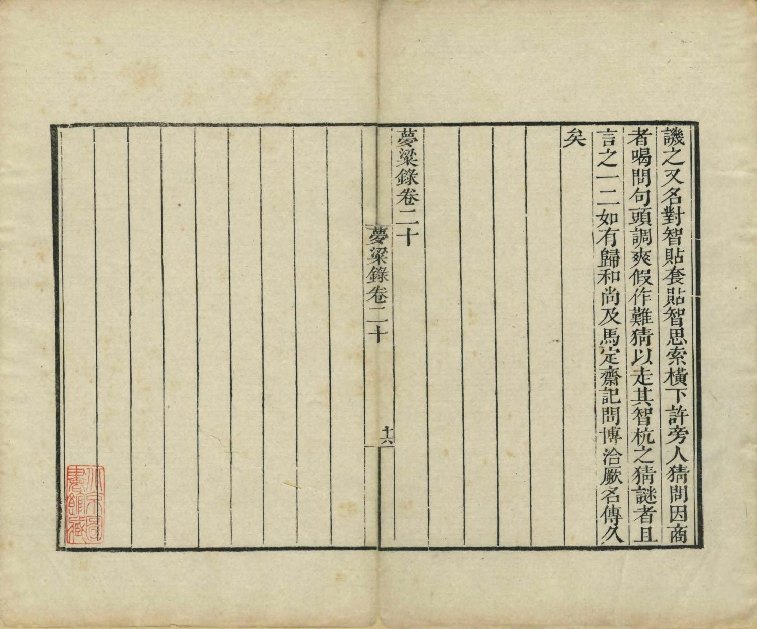 此《梦粱录》由南宋吴自牧撰。全书共二十卷,其仿效《东京梦华录》体例,详细记载了南宋都城临安(即今杭州)的地理与建筑、岁时与祭祀、社会管理与经济、民生与娱乐等内容。该书是了解南宋城市面貌、手工业活动、商业发展等情况,提供了较丰富的史料。此为清末刊本。