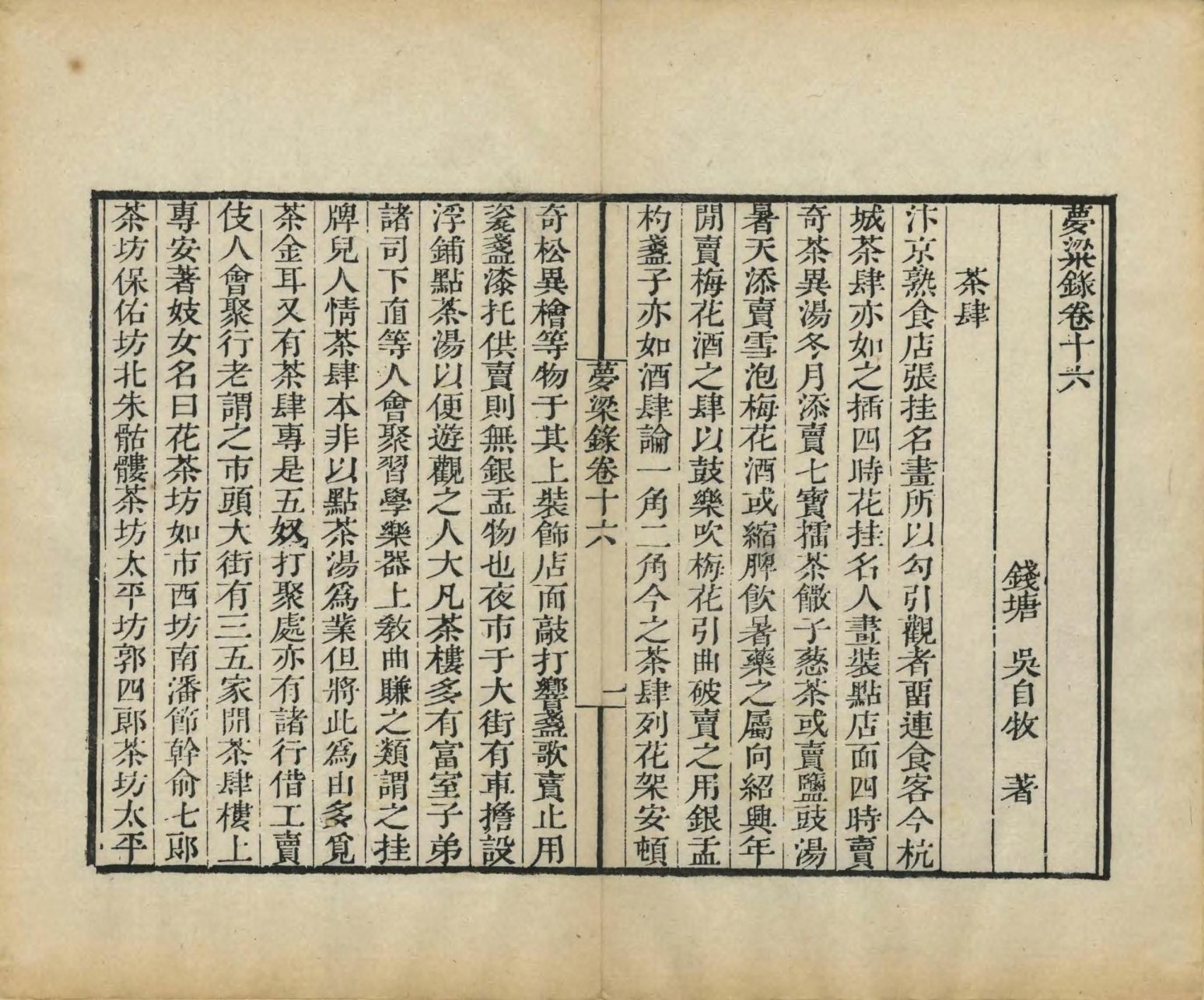 卷十六:茶肆、酒肆、分茶酒店、麪食店、葷素從食店、米鋪、肉鋪、鮝鋪