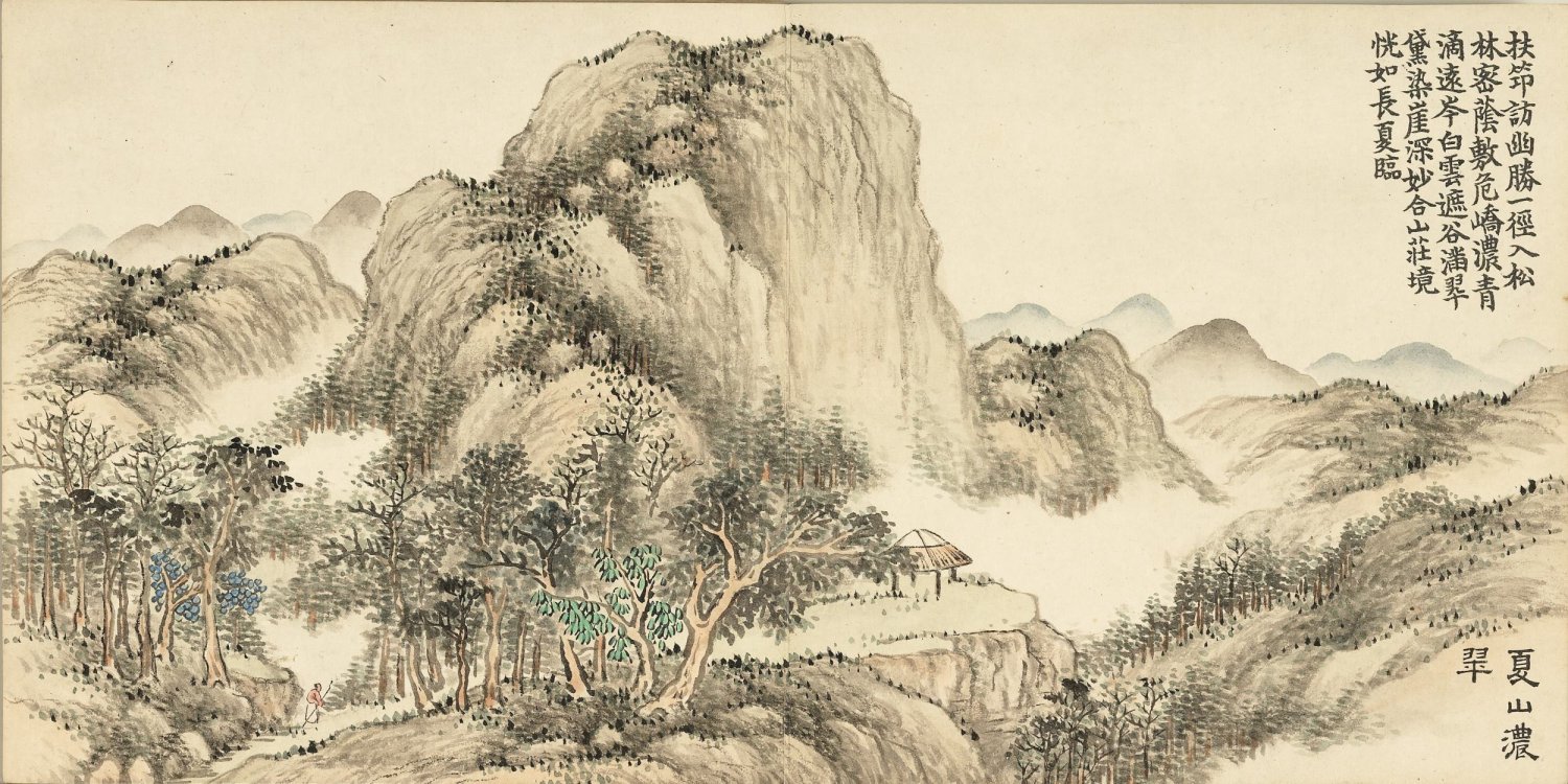 扶笻訪幽勝。一徑入松林。密蔭敷危嶠。濃青滴遠岑。白雲遮谷滿。翠黛染崖深。妙合山莊境。恍如長夏臨。