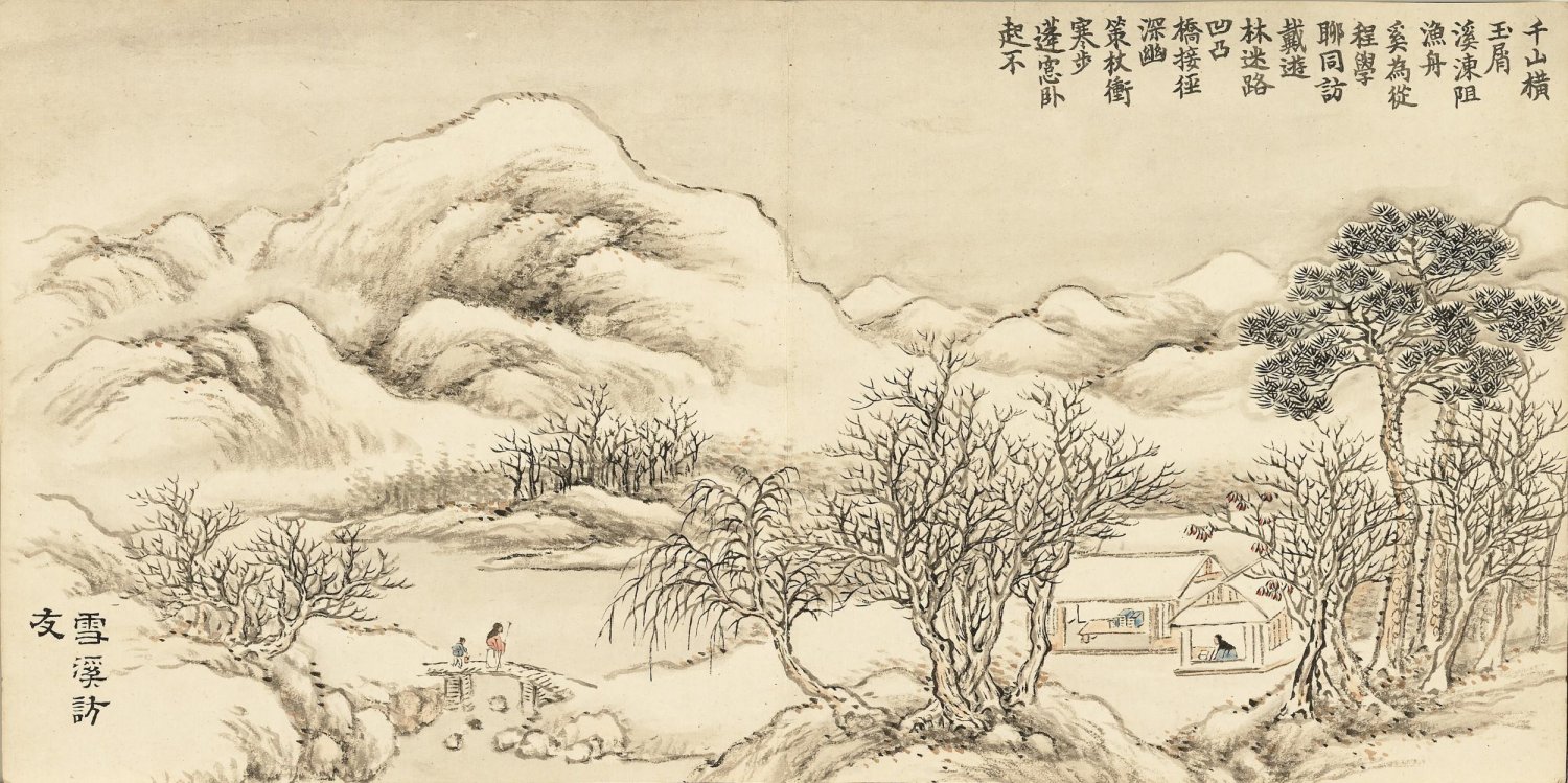 千山橫玉屑。溪涷阻漁舟。奚為從程學。聊同訪戴遊。林迷路凹凸。橋接徑深幽。策杖衝寒步。蓬窗臥起不。