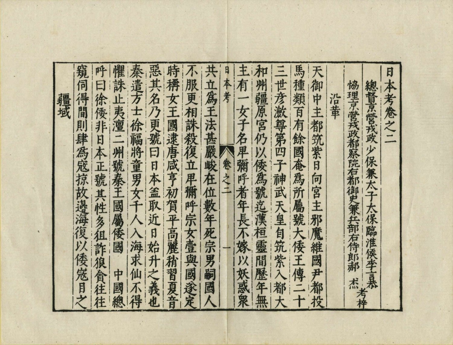 卷首题:總督京營戎政少保兼太子太保臨淮侯 李言恭、協理京營戎政都察院右都御史兼兵部右侍郎 郝杰、考梓