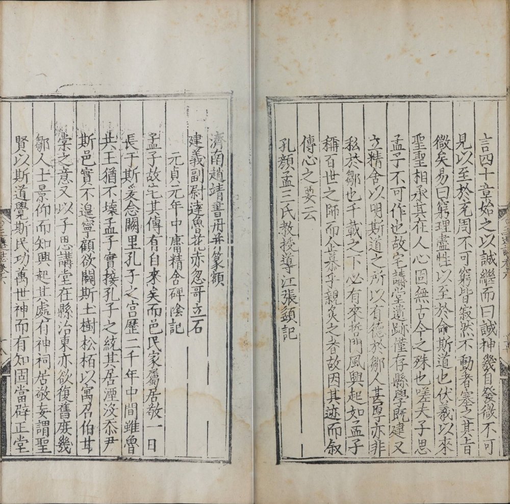 此《三迁志》由明代史鹗编撰,以 “孟母三迁” 典故来命名。全书共六卷,记述了孟子及其后裔家族相关历史事迹。内容包含:孟母孟子及庙制等图像;事迹、列传、世系、祀典等;诏敕、恩赐等;奏疏、祭文、诗等;碑记、墓志。此为明嘉靖三十二年邹县孟氏刊本。