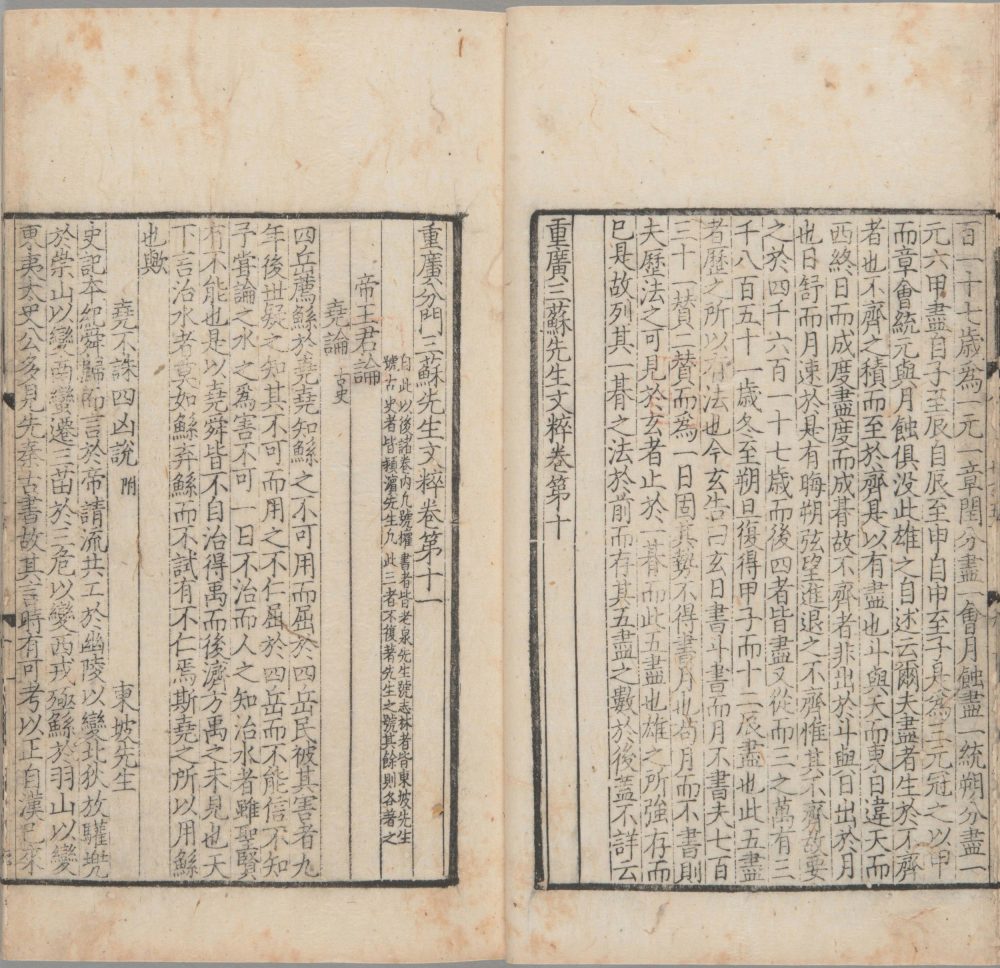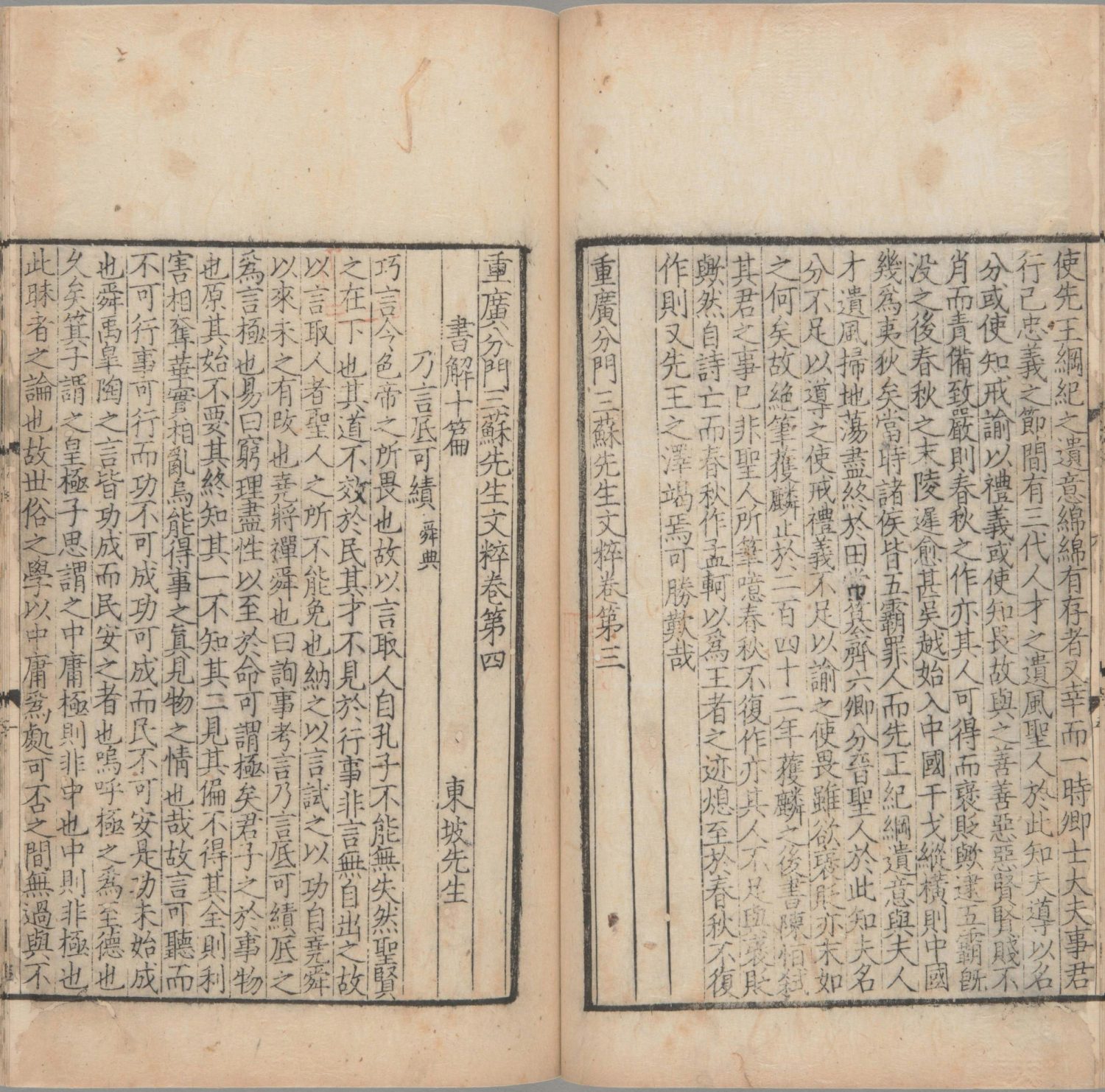 – 此《重广分门三苏先生文粹》未著編輯【编辑】者名氏。