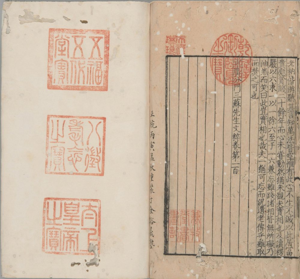 全书卷一百末记改装识语:「正統丙寅孟秋重裝于金谿義塾」。