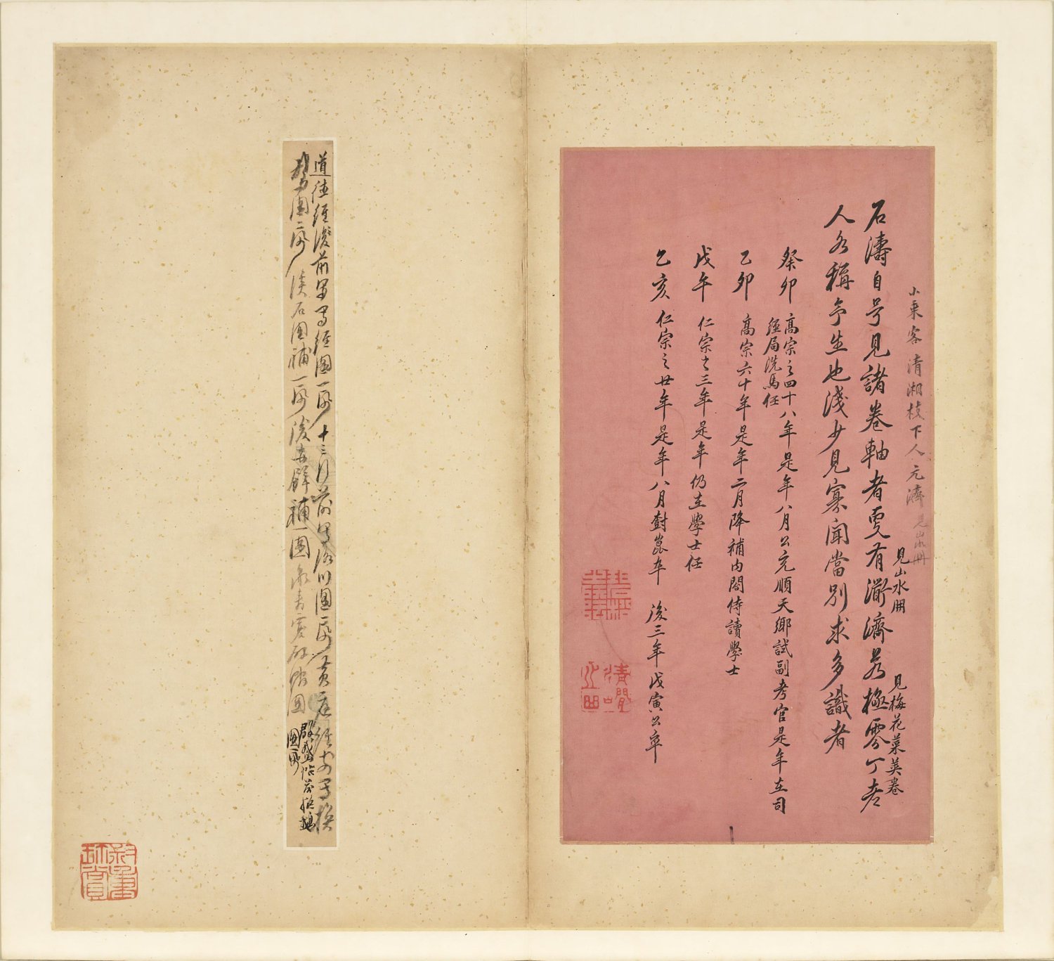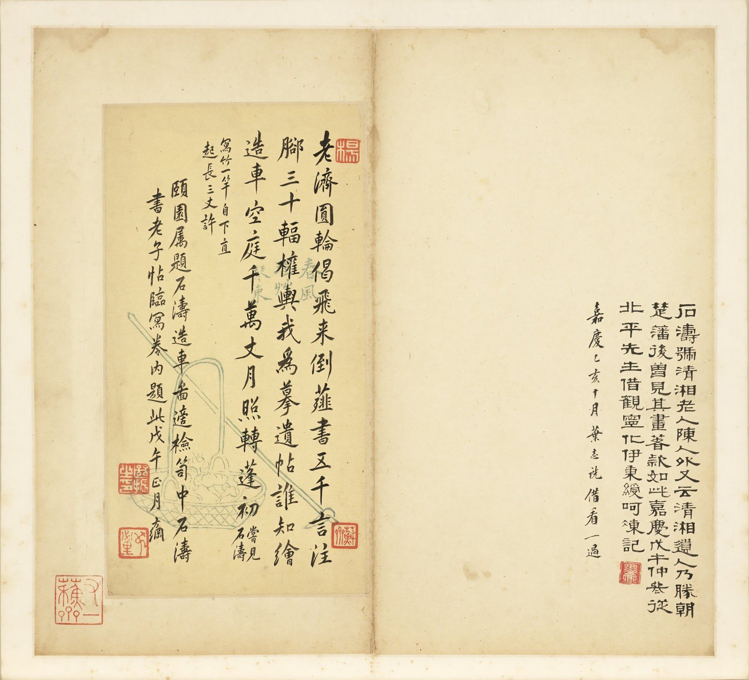 石濤號清湘老人。陳人。外又云清湘遺人。乃勝朝楚藩。後曾見其畫著款如此。嘉慶戊午仲冬從北平先生借觀。寧化伊秉綬呵凍記