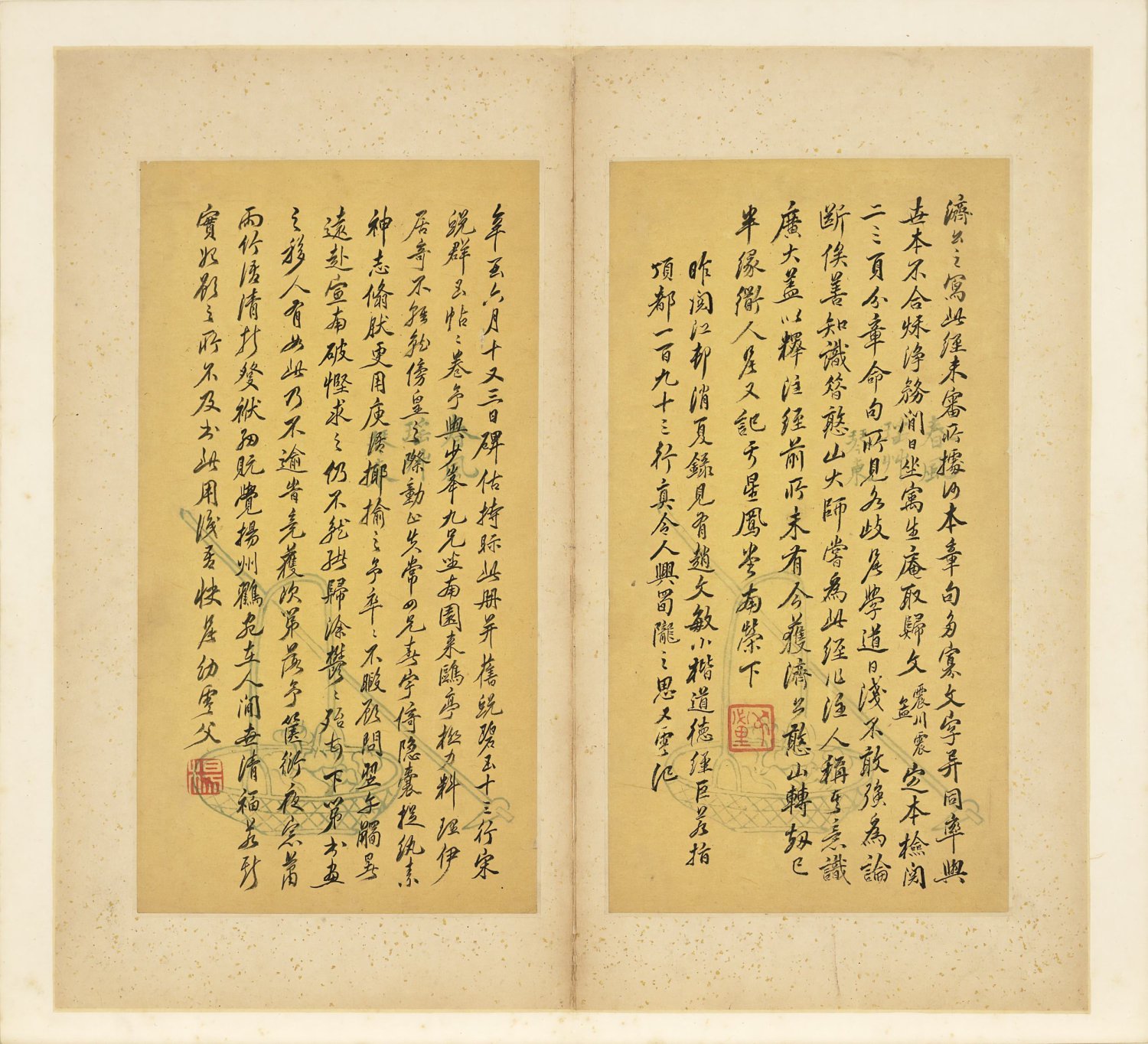 羅聘、林黃氏考藏經書畫金石文字、又一蘇齋、又雲、又雲考藏、又雲祕笈、又雲鑒定、半緣道人、吾心有魔吾眼有神、宏農楊氏世家、宏農蘇齋、叔重珍賞、岳軍鑑藏書畫印記、東卿過眼、星鳳、星鳳、星鳳堂、猗歟又雲、程齡孫特健藥、華陽張氏珍藏、覃谿鑑藏、楊(方印)、楊(圓印)、楊繼振印、楊繼震印、葉志詵、豪奪不廉巧偷不智、蓮公、墨林鑒藏真跡、蝯、繼振、繼振之印、繼震、蘇齋、靈石楊氏省吾齋鑒藏書畫眞蹟、尗必里