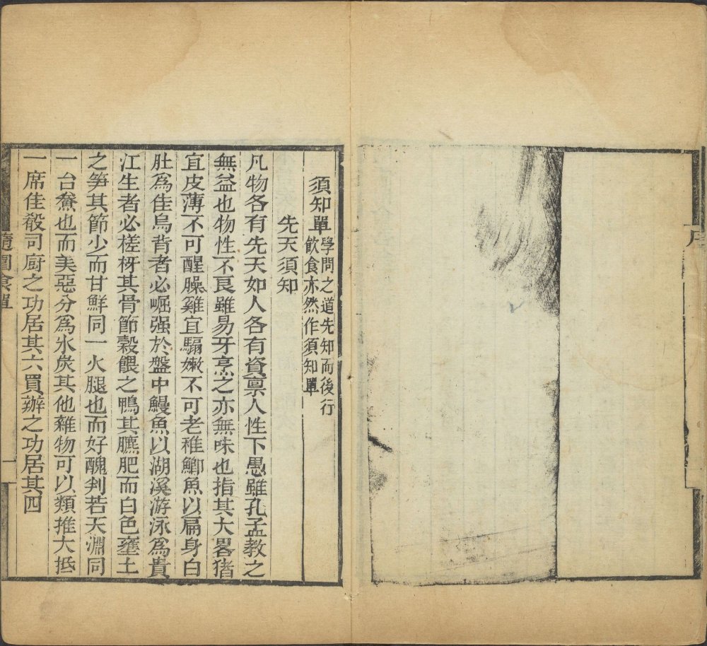 书中正文分十四单,前两单为理论,后十二单为具体食谱。全书从理论到实践,从主菜到小食,从饭粥到茶酒,构建了一个完整的汉族士大夫饮食体系。其编排顺序也隐含了宴席的逻辑:先明理,次备料(从贵到贱,从荤到素),再点心主食,最后以茶酒收尾。