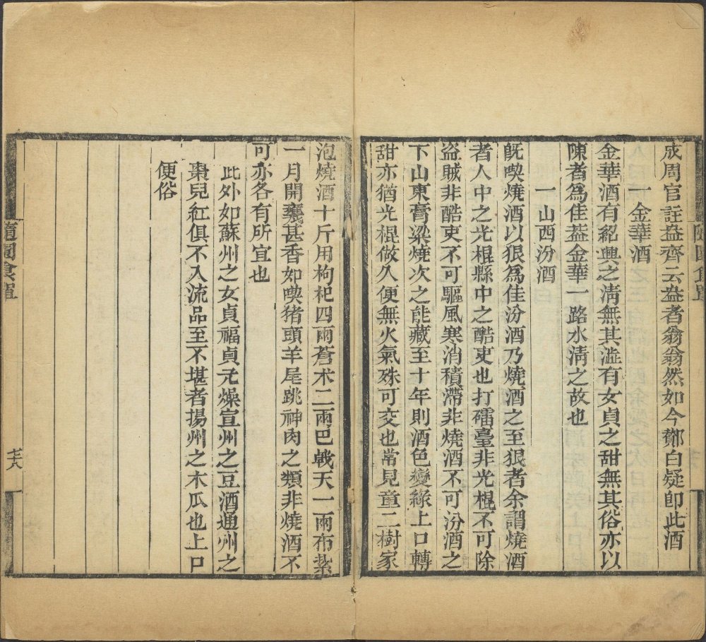 茶酒单:前半部分论茶,推崇龙井,讲究水质与冲泡;后半部分论酒,极推崇绍兴黄酒,列举了当时的各类名酒。