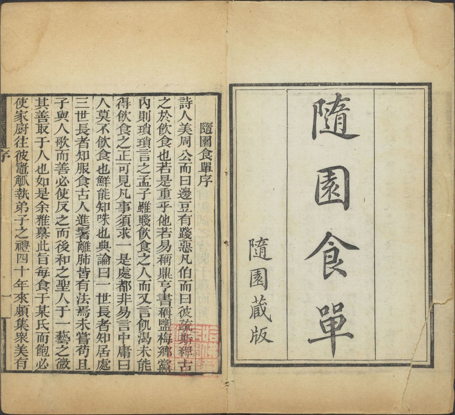 书名页题:隨園食單 隨園藏版