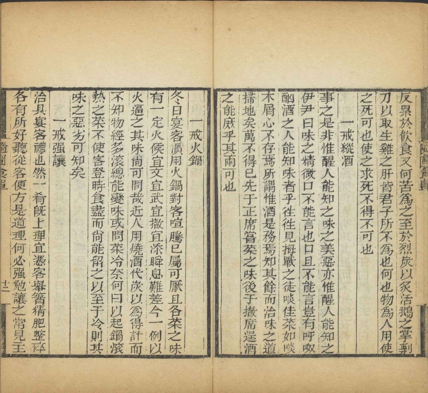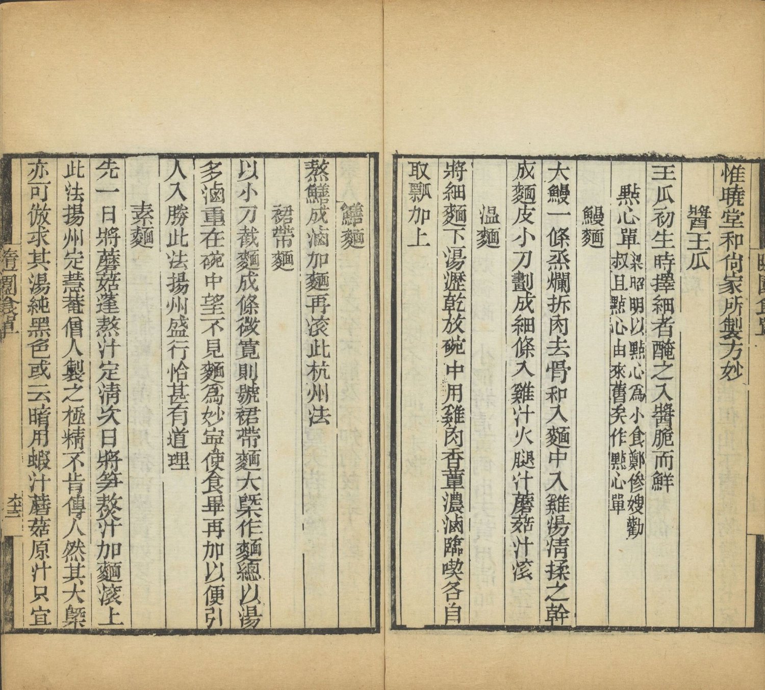 书中正文分十四单,前两单为理论,后十二单为具体食谱。全书从理论到实践,从主菜到小食,从饭粥到茶酒,构建了一个完整的汉族士大夫饮食体系。其编排顺序也隐含了宴席的逻辑:先明理,次备料(从贵到贱,从荤到素),再点心主食,最后以茶酒收尾。