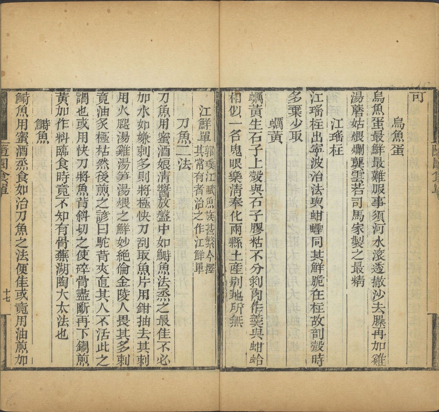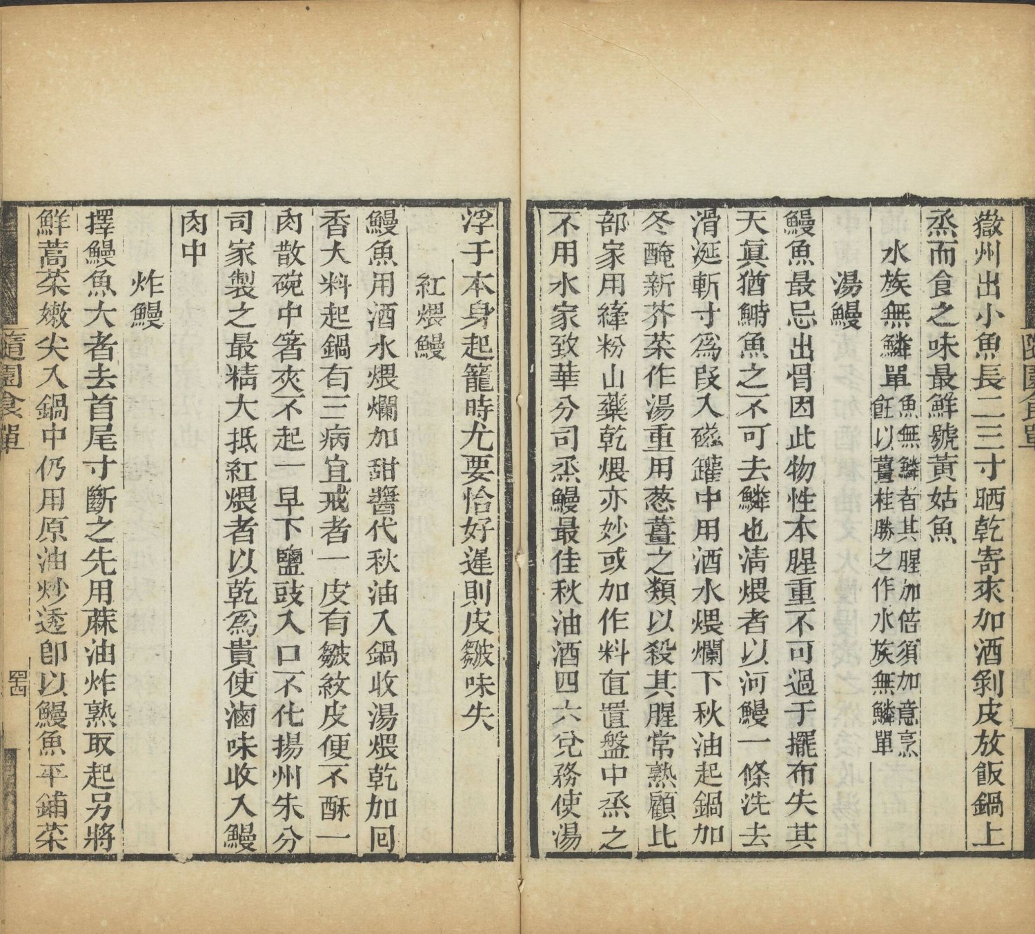 江鲜单:主要记载长江流域的时令鲜鱼,如鲥鱼、刀鱼、鲟鱼等。强调此类食材必须现杀现做,不可放置,且对火候要求极高,多主张保持原汁原味,反对过度调味。