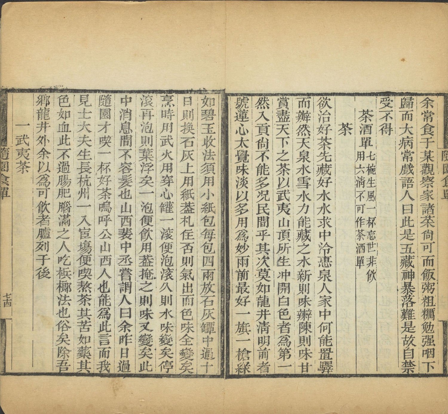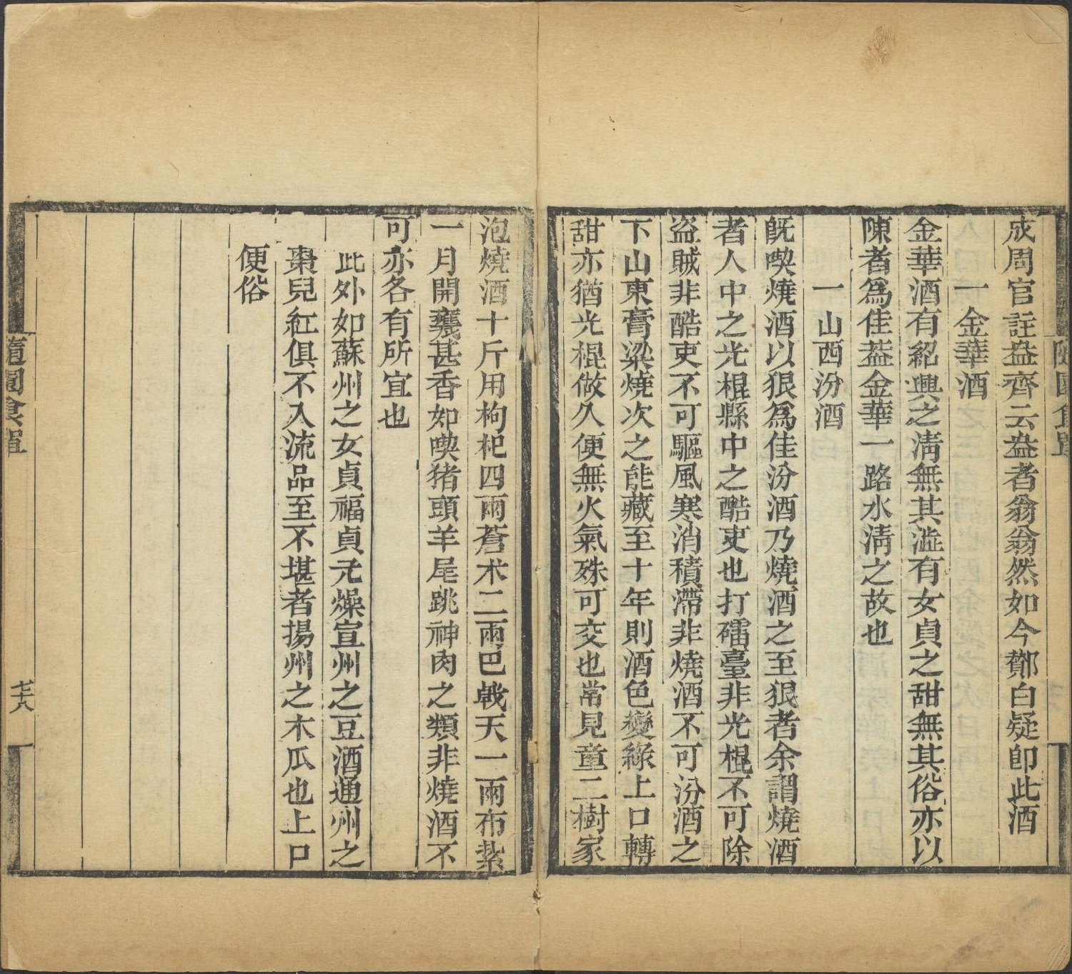 茶酒单:前半部分论茶,推崇龙井,讲究水质与冲泡;后半部分论酒,极推崇绍兴黄酒,列举了当时的各类名酒。