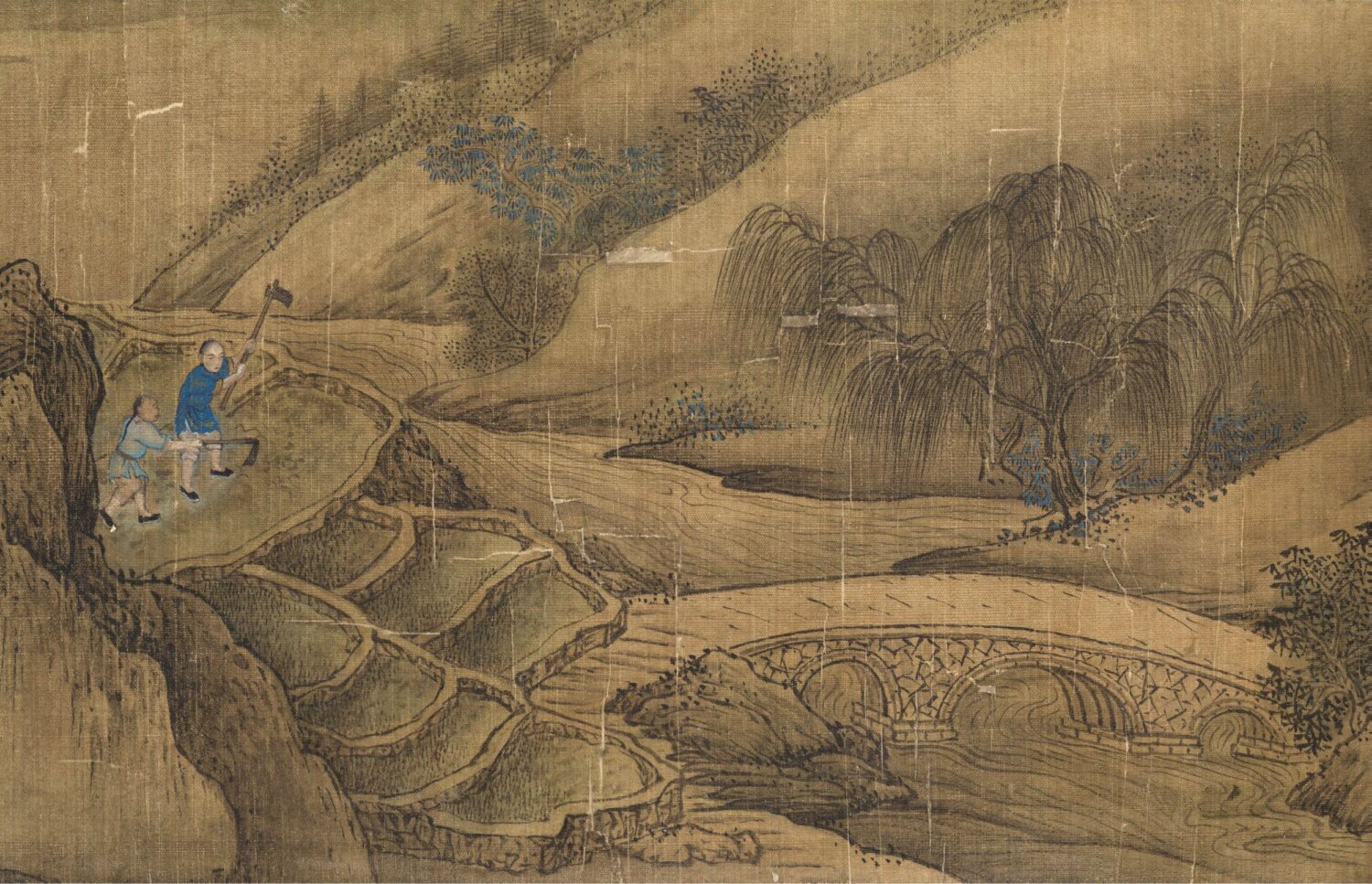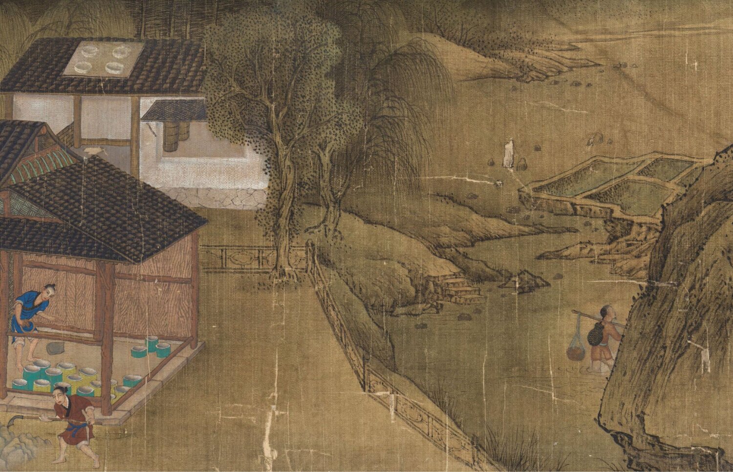 凿土:工人应是凿采瓷石,一些担著石泥篮子准备离去。