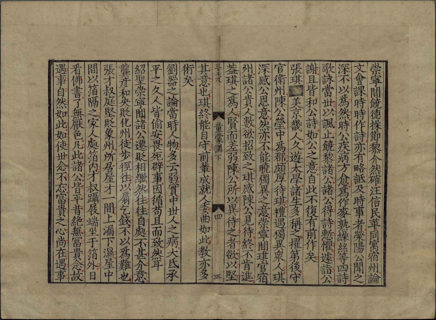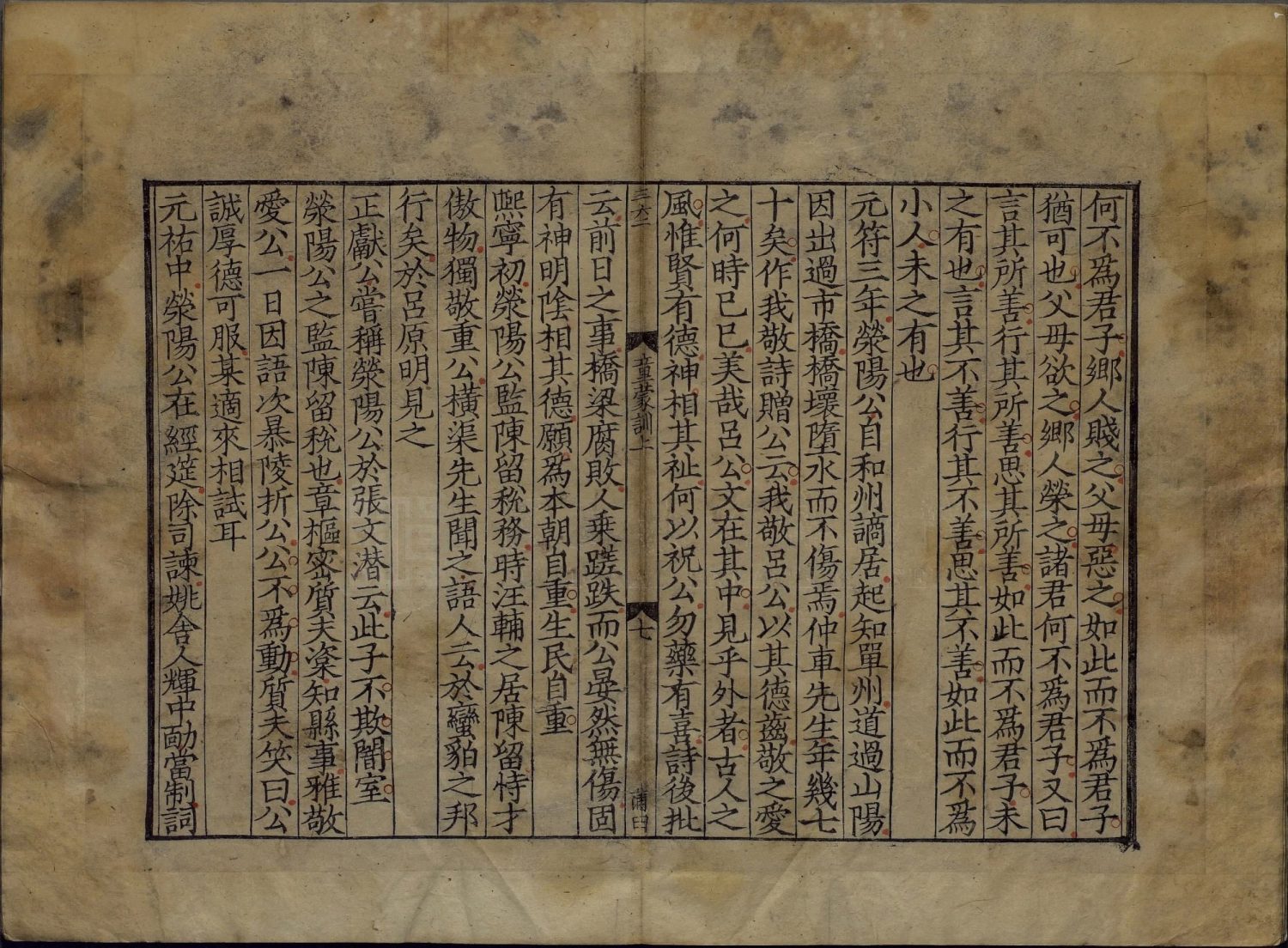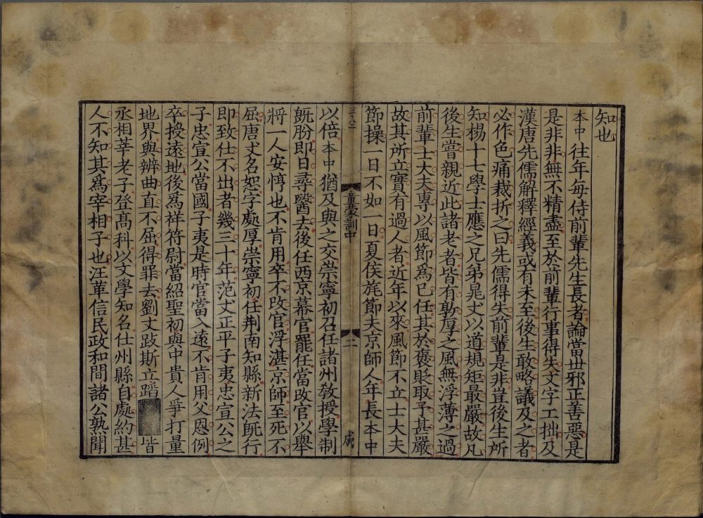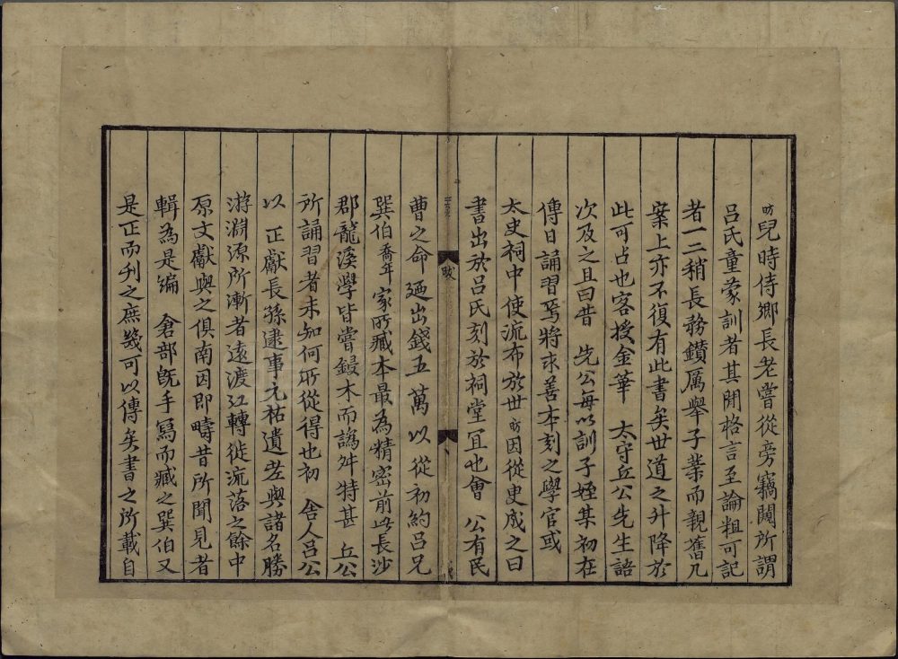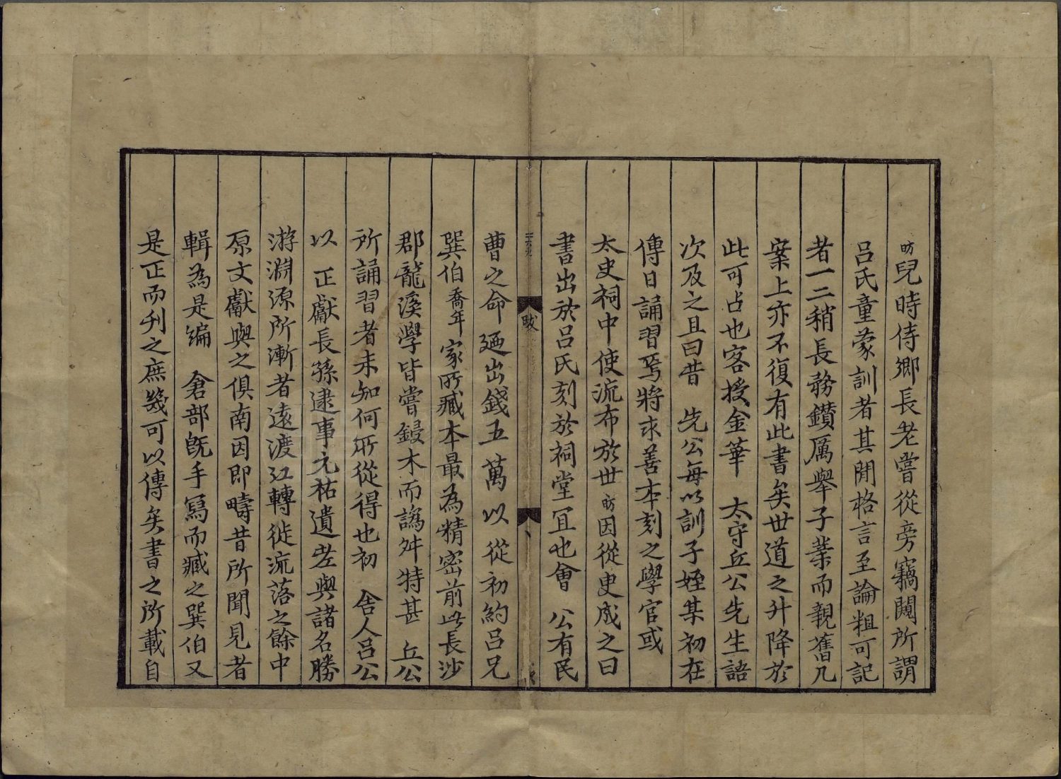 此《童蒙训》由宋代吕本中撰。全书分作上中下三卷,采用语录体,内容取大儒名言、述根本经训、集师友杂说,多关立身、行己、读书、取友、抚世、酬物,仕州县、立朝廷,纲条本末等正论格言。这是其家塾训课本之一,侧重伦理道德教化。此为南宋绍定二年李埴寿州刊本。