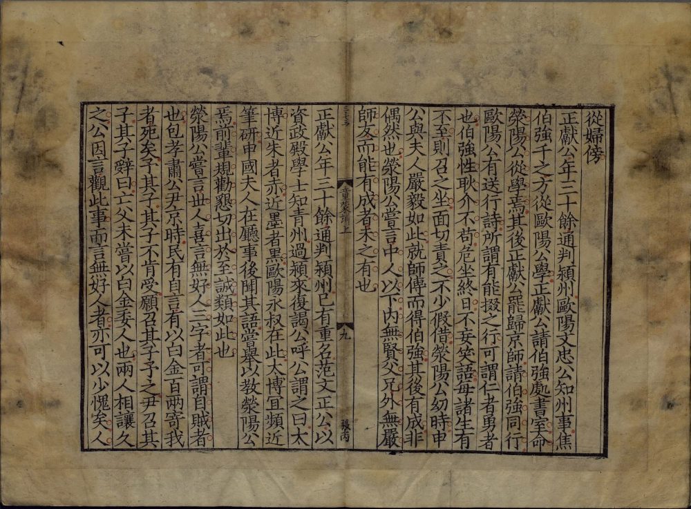 「國立北平圖書館收藏」朱方、「宋存書室」白长、「關西節度系關西」朱橢、「以增之印」白方、「楊紹和藏書」朱長、「汪士鐘曾讀」朱长、「張雋之印」朱白方、「都氏玄敬」白方、「都氏玄敬」朱方、「莫氏壽樸堂記」白方、「彥合珍玩」朱方、「宋存書室珍藏」朱长、「楊印紹和」白方、「聊攝楊氏宋存書室珍藏」朱方、「南濠居士」白方、「協卿讀過」白方、「海源閣」朱长、「黃復之印」白方。