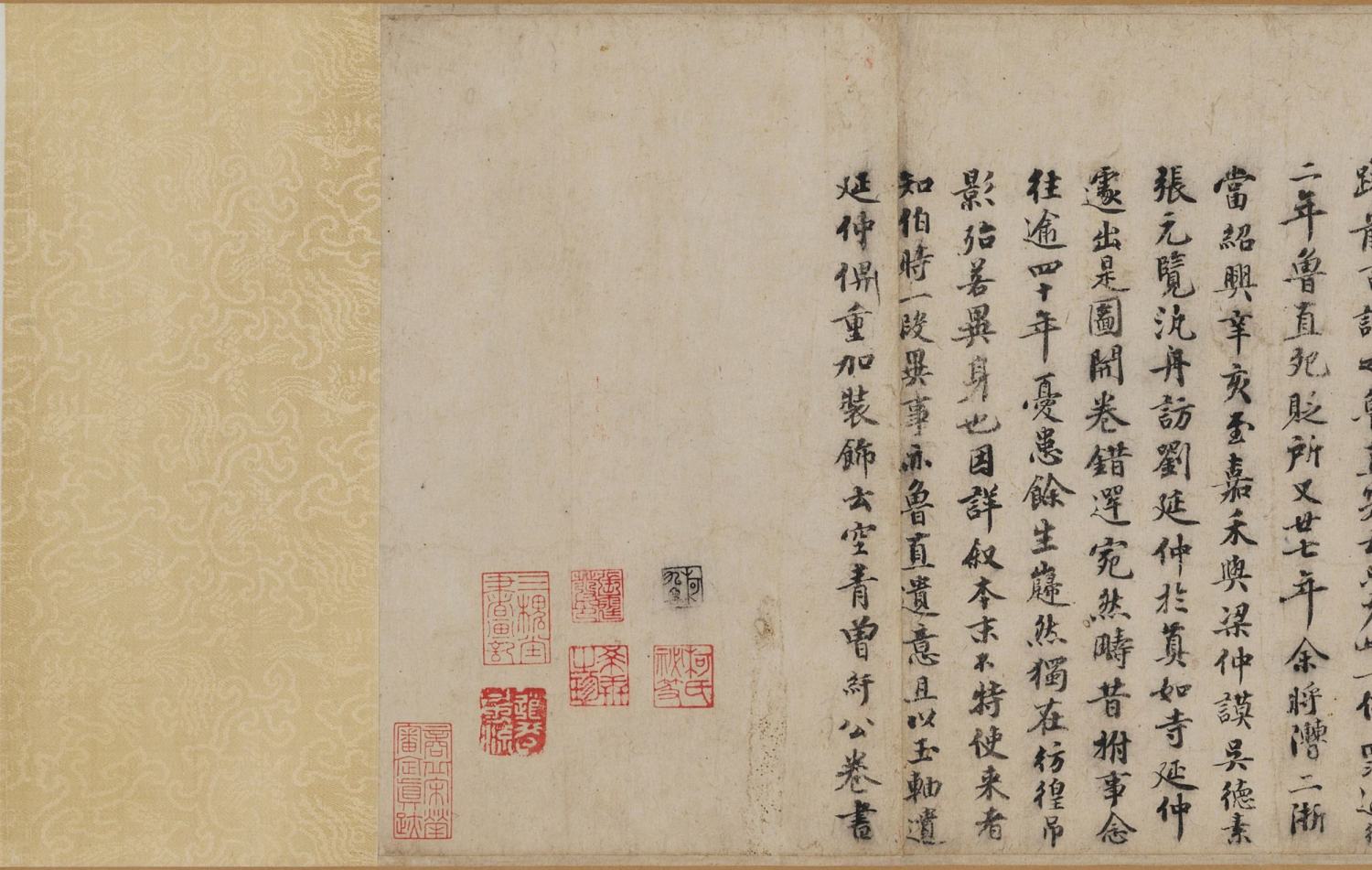 这幅画在南宋时期,曾被内府珍藏。在元代和明代,它被柯九思、张霆发等人收藏。到了清代康熙年间,它落入了河南商丘宋荦家的手中。在乾隆年间,这幅《五马图》被收入了清宫的珍藏。到了清末,溥仪退位后,它被带出宫廷 [2] 清帝逊位后,溥仪以赏赐的方式将大量书画偷运出宫。 1928 年,日本东京举办 “唐宋元明名画展览会”,《五马图》由溥仪老师陈宝琛的外甥刘骧业带去展览。 1930 年,刘骧业将《五马图》出售给日本政商要人末延道成。 1933 年,文部省指定《五马图》为重要美术品。第二次世界大战后,《五马图》下落不明,据传毁于战火。人们只能通过珂罗版图版了解《五马图》,乃误以为此画为白描。 ,其后的行踪成为了谜团。直到 2019 年初,日本东京国立博物馆举办了 “颜真卿:超越王羲之的名笔” 特展,该画作在展览中展出,才揭开了近一个世纪以来的神秘面纱。(介绍参考:坦腹斋 ·宋 李公麟《五马图卷》)