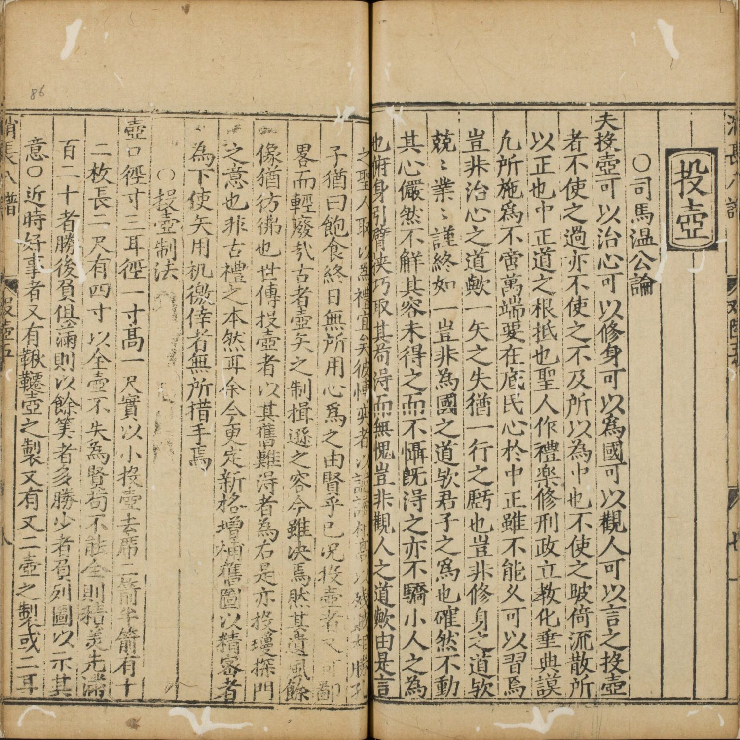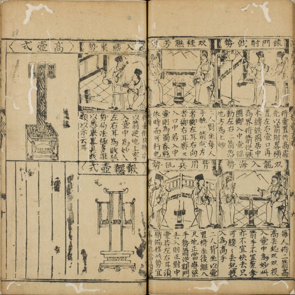 卷五:双陆 [2] 双陆,古代博戏用具同时也是一种棋盘游戏。古代长期流传的掷赛游戏,两粒骰子,双方各 15 枚棋子。 、投壶(首图题:唐宮雙陸)