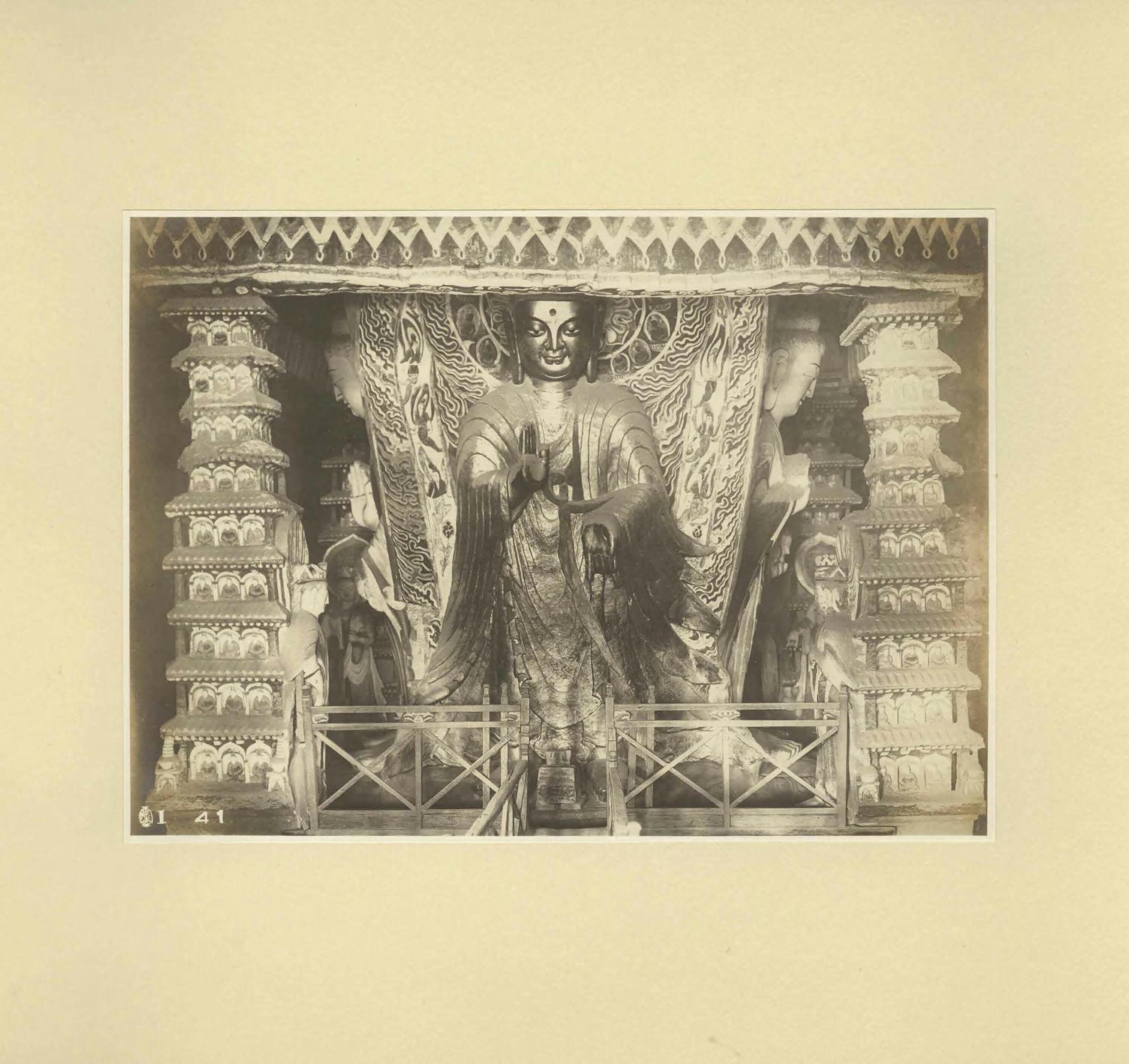 震旦在佛经中泛指今天的中国。此《震旦旧迹图汇》由日本摄影师山本明(山本赞七郎长子)辑编。全书分:云冈石窟、北京及其附近旧迹两辑(图版四卷,两辑各一百幅),拍摄时间大约是 1916 年至 1921 年。此为日本昭和八年(1933)东京山本写真场摄影本。
