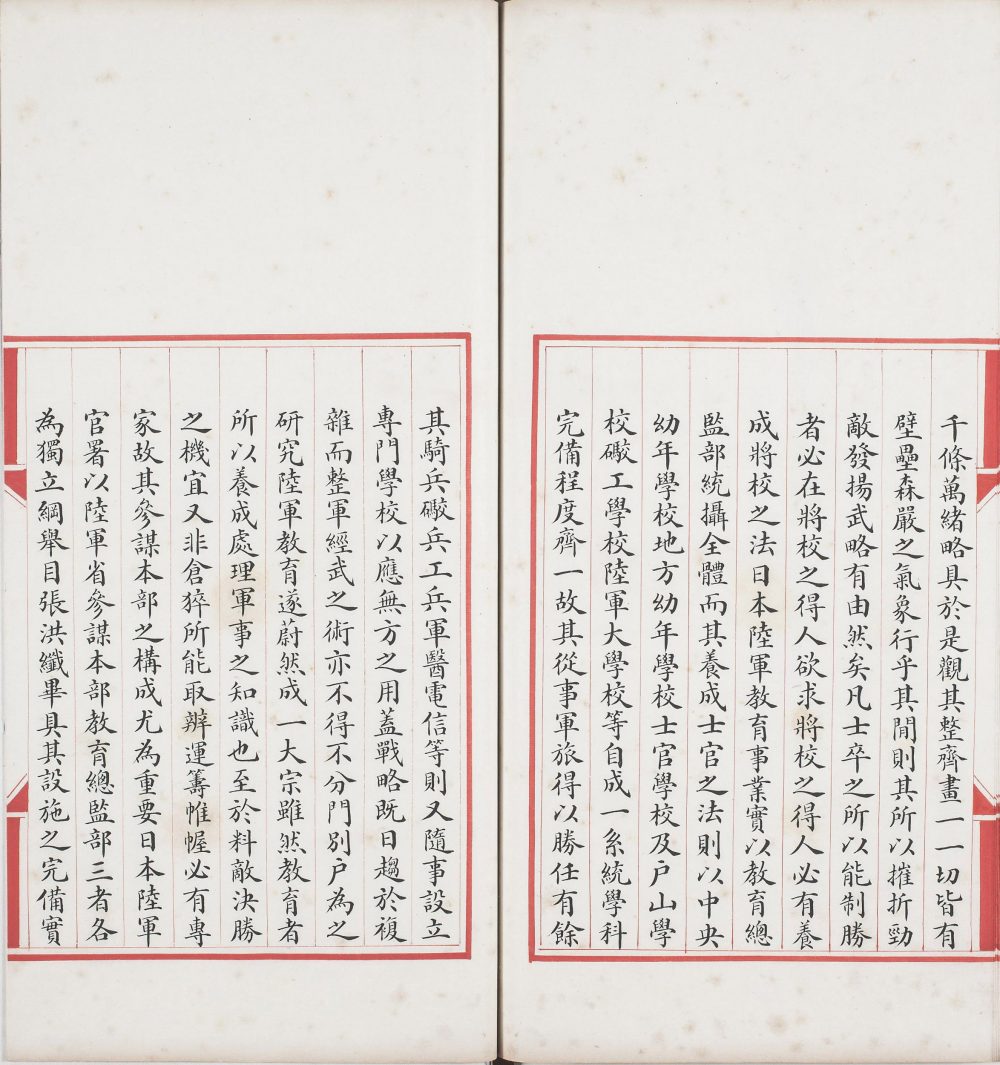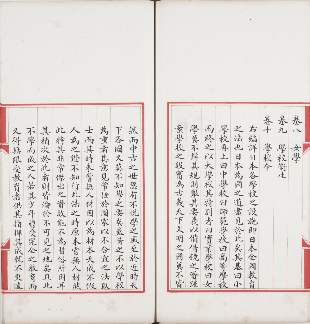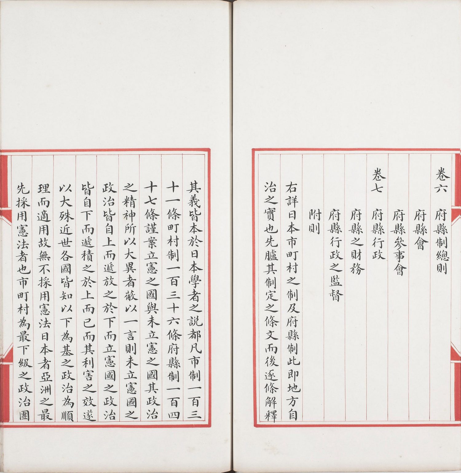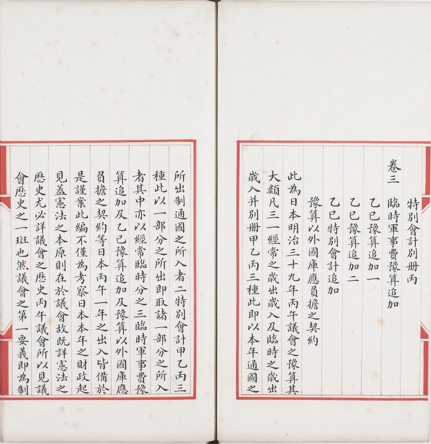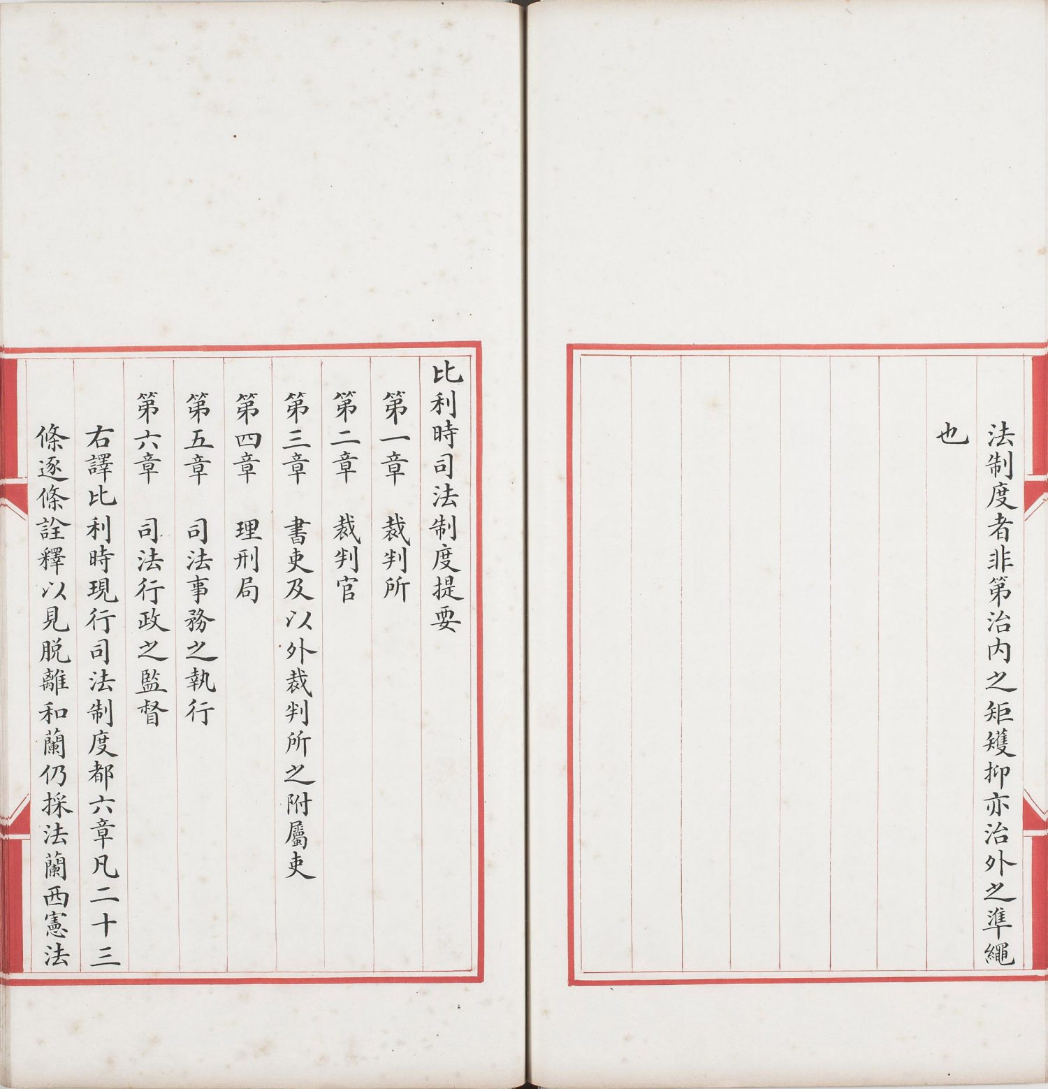 此《政治丛书提要》不题书写者。全书共四卷,共三十种宪政类书籍提要,始于:日本宪法疏证提要。终于:日本统计类表叙论提要。应该是清末预备立宪时期,进呈给光绪皇帝阅读的宪政书籍提要,内容包括:宪法、国会、税法、制度、教育、货币、司法等等。此为清光绪宣统年间内府朱丝栏钞本。