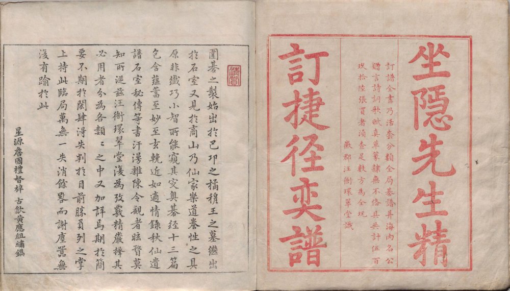 书名页题(朱印):坐隱先生精訂捷徑奕譜(此书中 “奕” 字其实应作 “弈”)