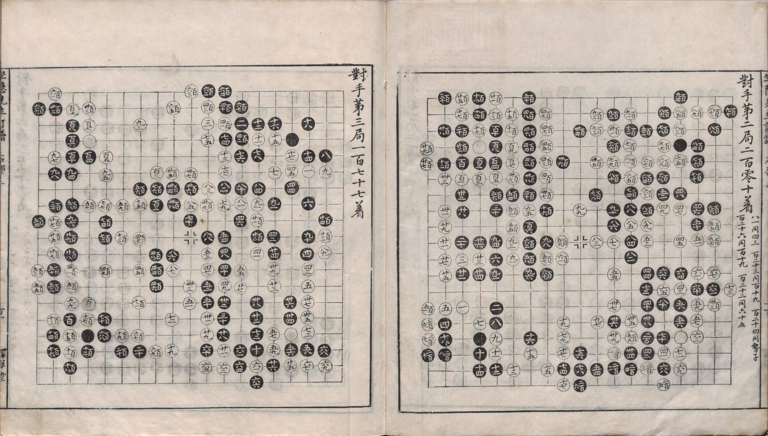 上卷(重布局与定式): 记载了古代的各种 “套手”(即局部定式和骗着),如 “超好手套” 、 “钓竿套” 、 “大角套” 、 “十字套” 等数十种变化。